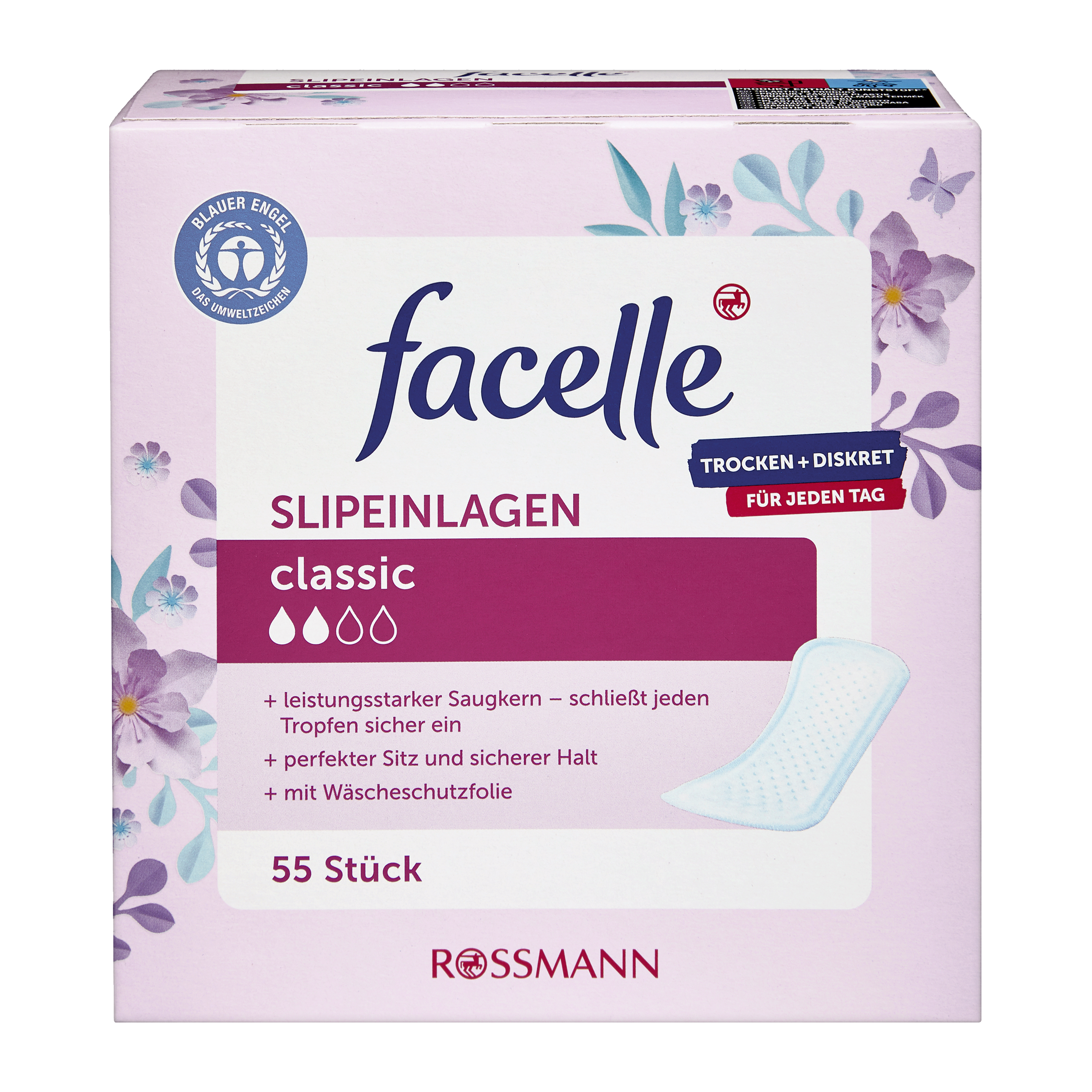 Slipové vložky pro příjemný pocit ochrany během vašich dní. Bezpečné, a přitom diskrétní. Díky svému silnému absorpčnímu jádru uzavřou bezpečně kapalinu a ochrana je navíc podpořena díky přilnavému povrchu, který pevně drží na spodním prádle. Slipové vložky jsou prodyšné a mají zvláště měkký povrch, který je šetrný k pokožce. Klasický střih pro pocit komfortu za jakékoliv situace.