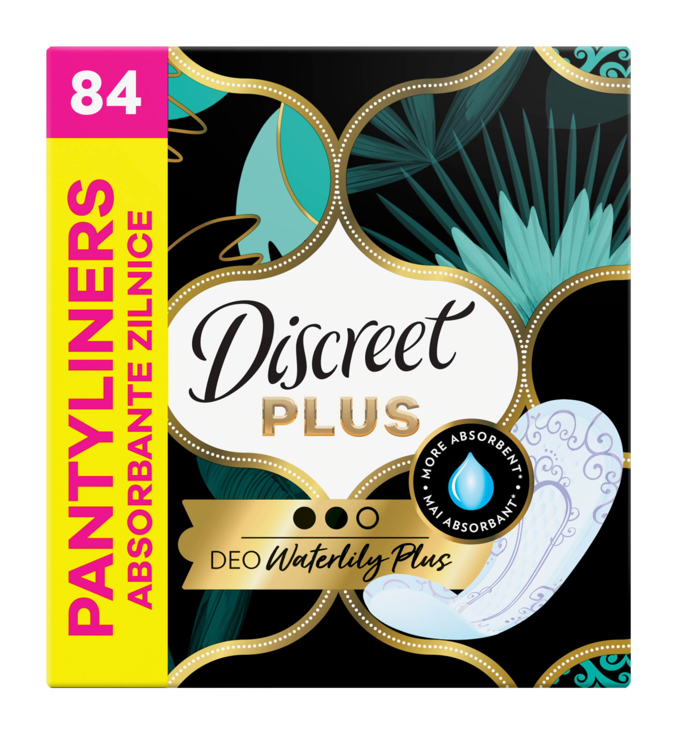 Intimky Discreet Plus jsou navrženy pro vaši ochranu. Zároveň jsou velmi tenké, takže je téměř necítíte. Inovativní technologie jádra účinně absorbuje tekutinu a uzavře ji uvnitř, abyste se ve spodním prádle celý den cítila čistě a svěže. Tato intimka má charakteristickou vůni leknínu a poskytuje celodenní svěží pocit, s nímž zvládnete vše.