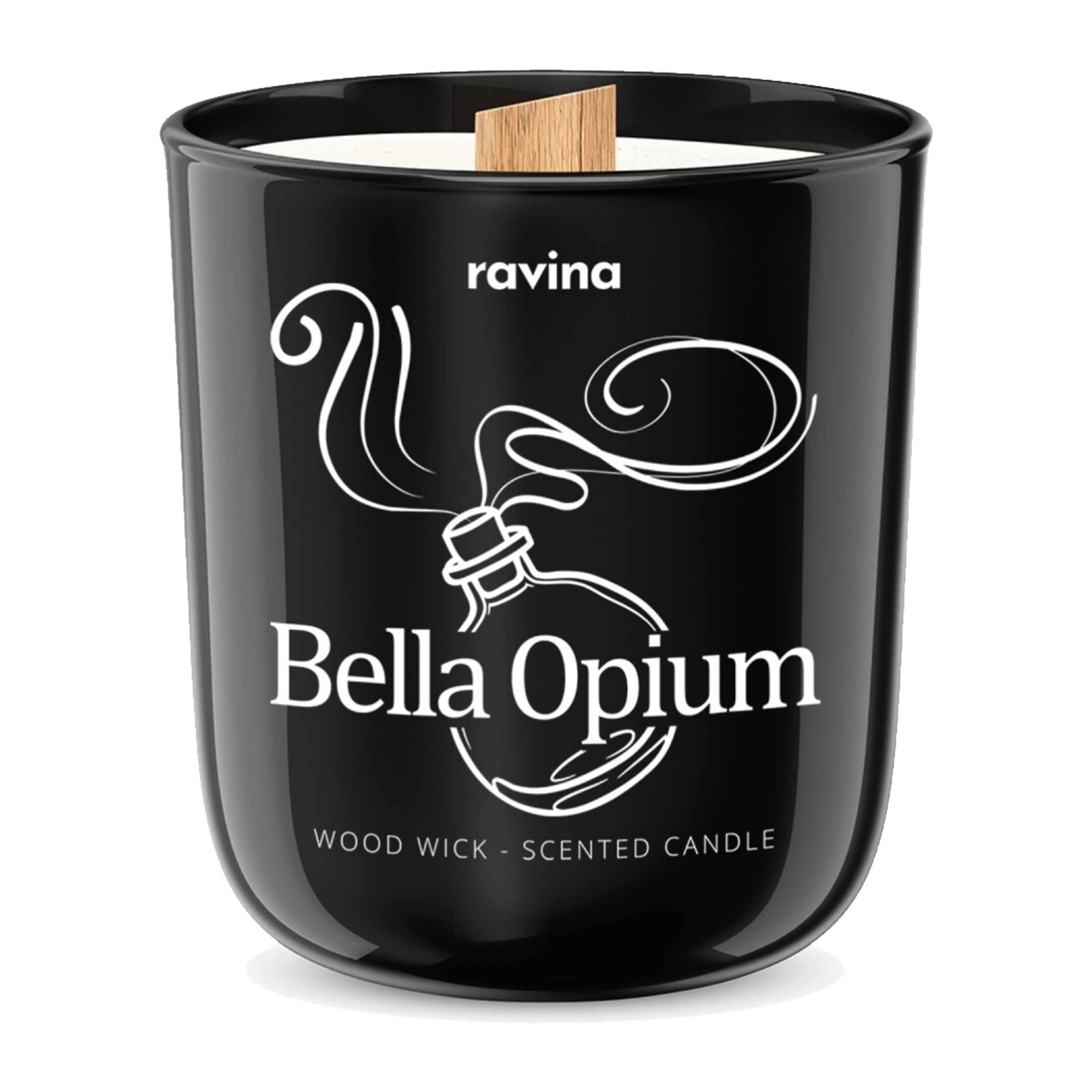 Bella Opium je vůně, kterou si okamžitě oblíbíte. Nemusíte ji nosit jen nastříkanou na těle v podobě parfému, ale užijte si ji i při provonění domácnosti. Po zapálení této sójové svíčky ucítíte vůni růžového pepře, sladkou hrušku a pomerančový květ. Tato směs z ní dělá velmi podmanivou vůni. Orientální vůni tvoří tóny černé kávy snoubící se se smyslnou vanilkou, obohacenou o jemnost bílých květů spolu s vůní pačuli a uklidňujícího pižma. Sójová svíčka Ravina není po zapálení toxická.