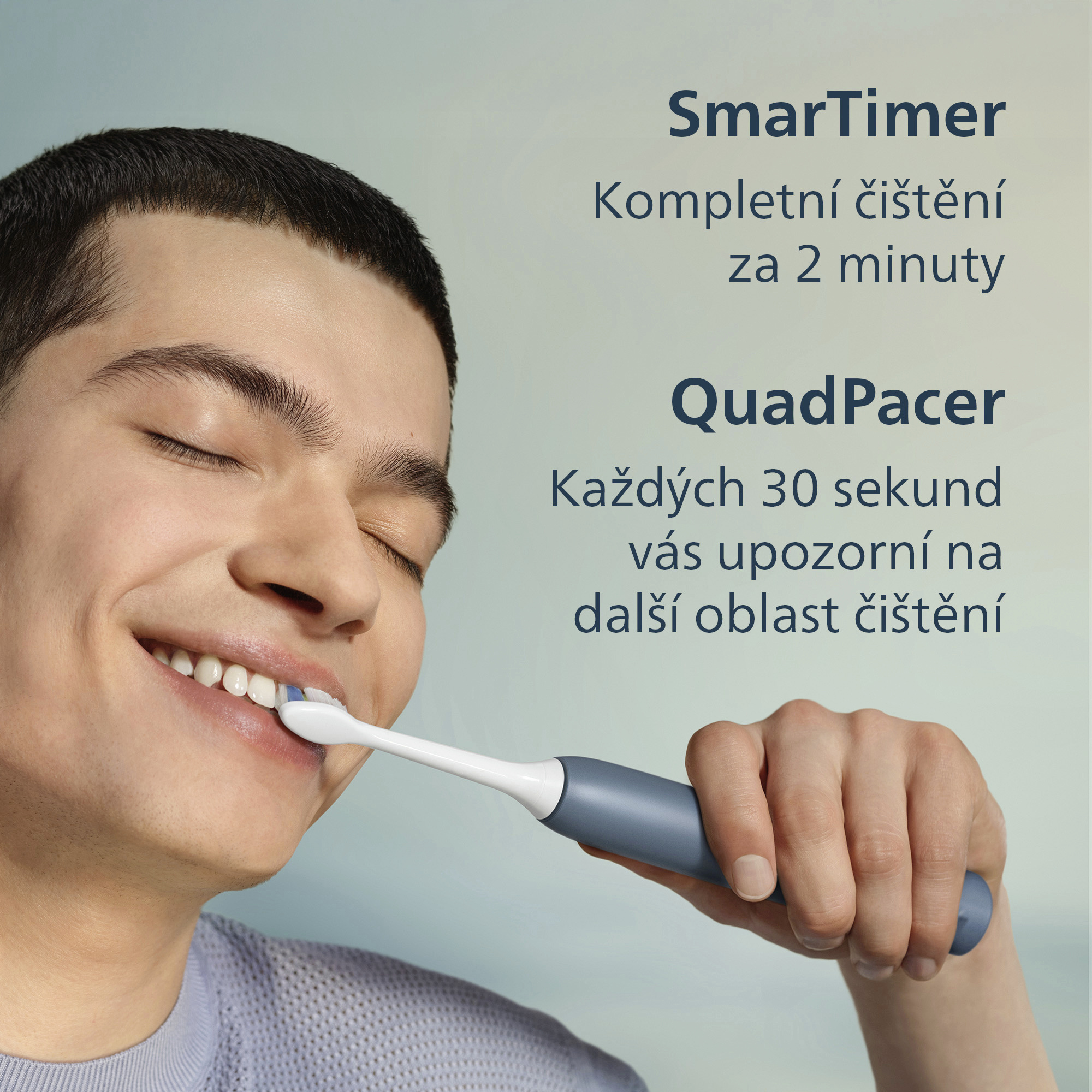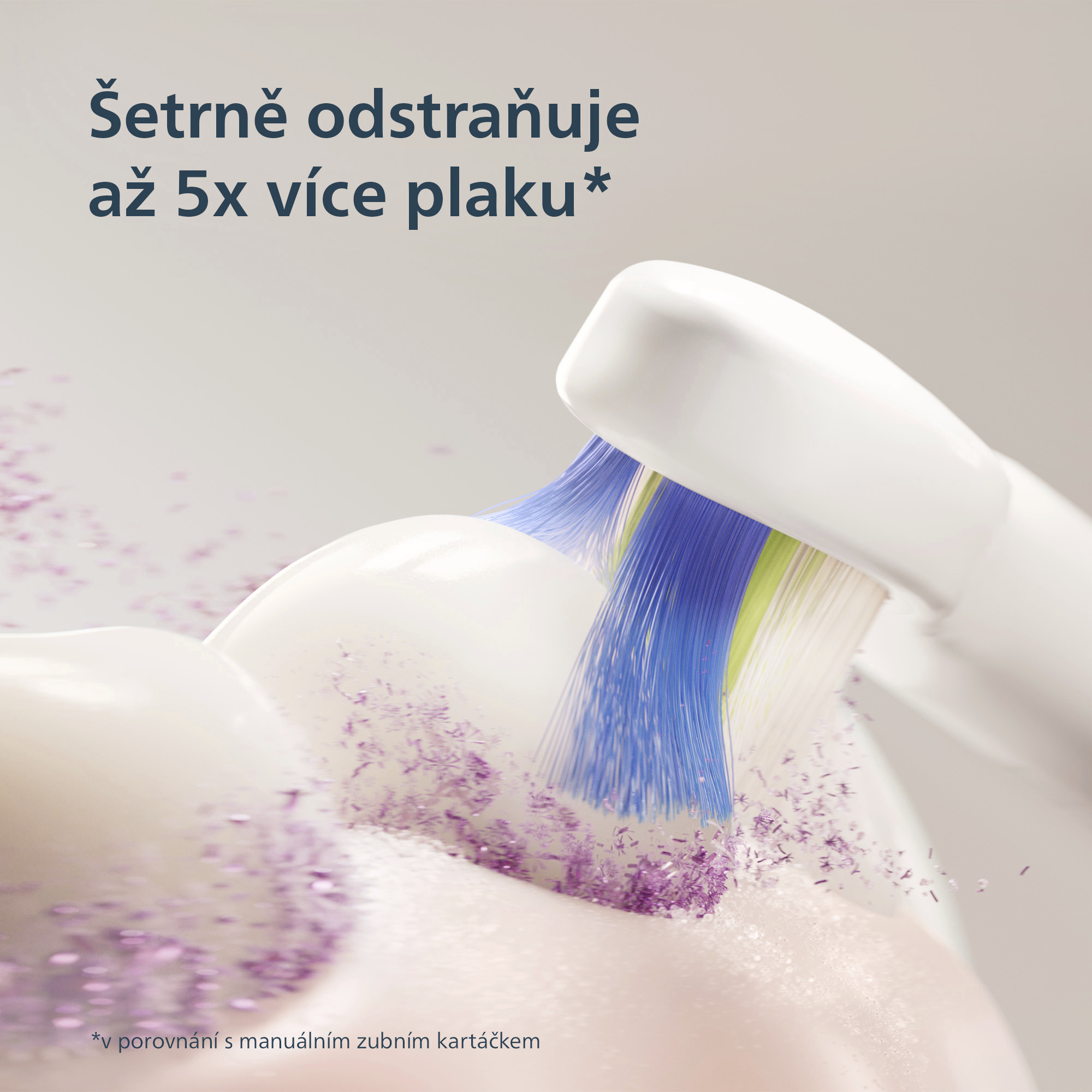 - Odstraňuje až 5× více plaku než manuální kartáček