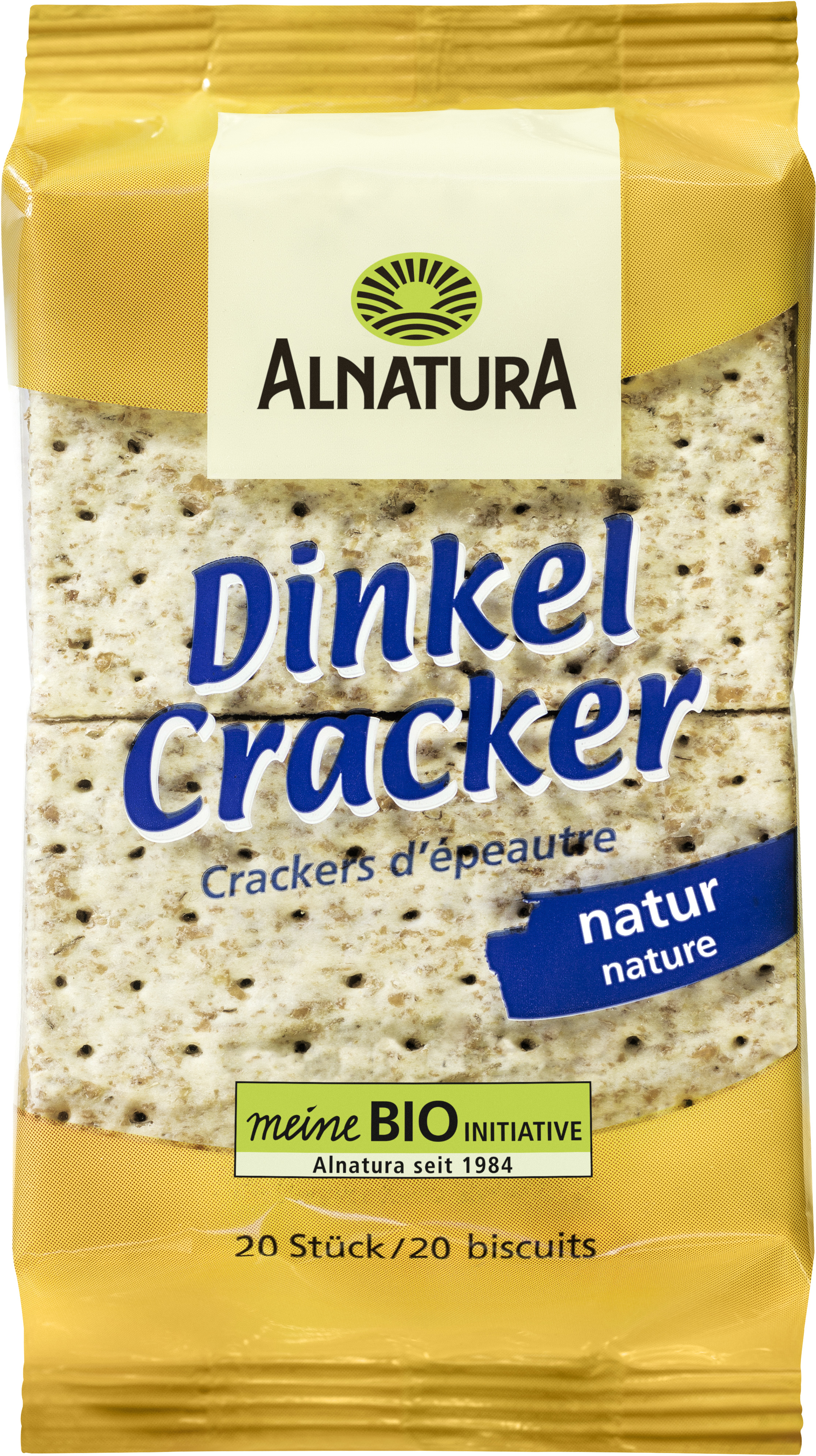 Tyto křupavé bio krekry jsou vyrobeny z 89 % z celozrnné špaldy a jsou veganské. Jsou výborné k zakousnutí samotné nebo se salátem či dipem; obdélníkové plátky se hodí i na barevné sendviče. Díky svému kompaktnímu formátu jsou Alnatura ideální i jako svačina na hřiště nebo na projížďku na kole.