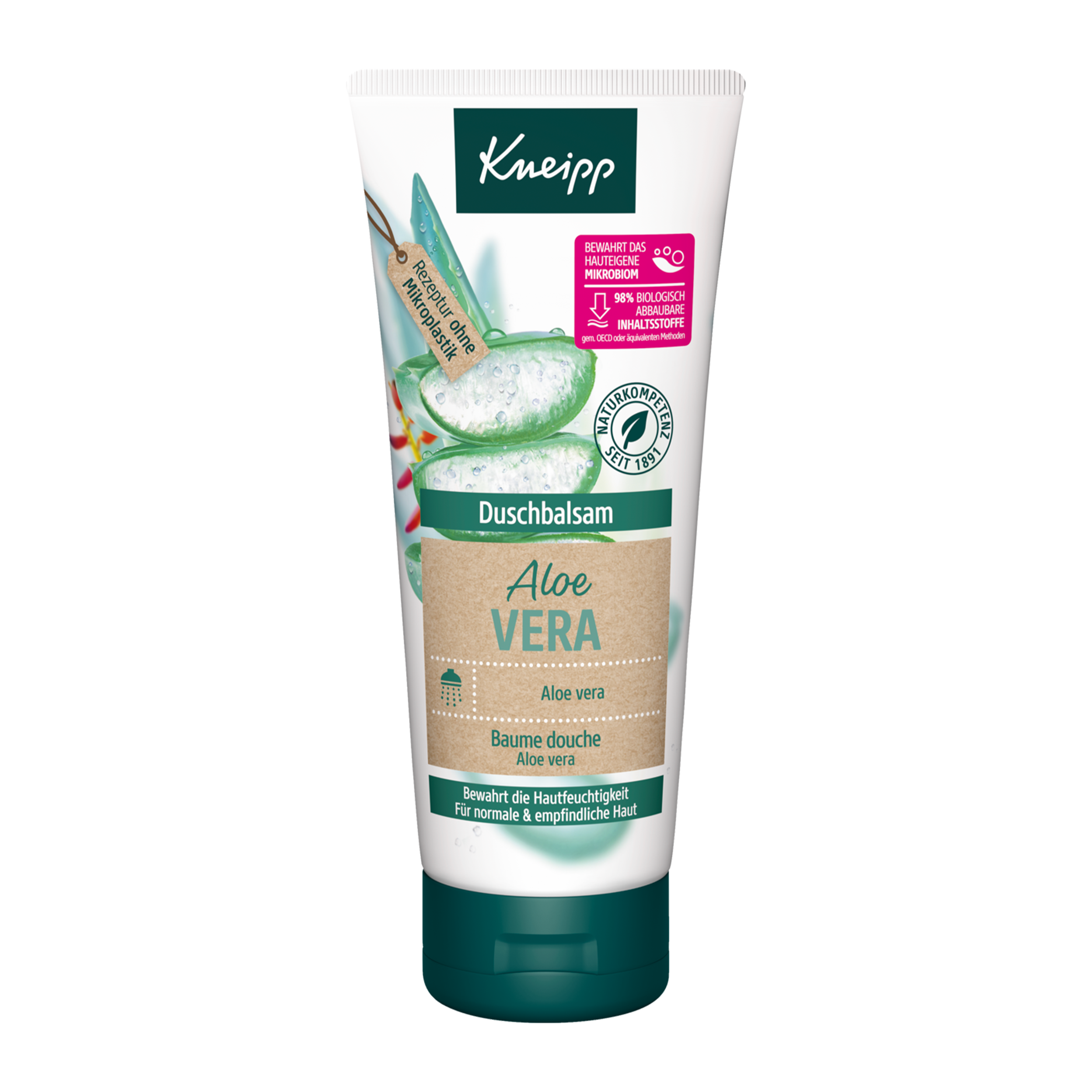 Kneipp sprchový gel Aloe Vera v sobě snoubí esenciální a pečující oleje a přírodní výtažek z aloe vera. Pečlivě navržené rostlinné složení zabraňuje nadměrnému vysoušení pokožky při každodenní očistě těla a hodí se pro normální i citlivou pleť. Hydratační účinky sprchového gelu ověřila nezávislá vědecká studie.