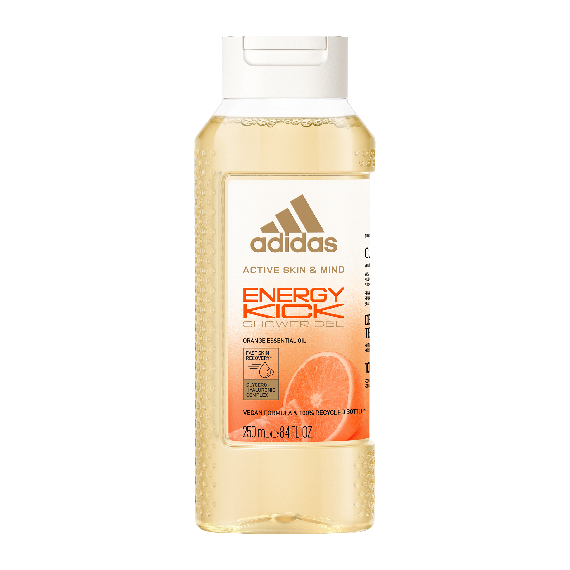 Energy kick sprchový gel s energizující vůní pomerančového éterického oleje a glycero-hyaluronovým komplexem pro rychlou obnovu hydratace pokožky po sprchování.