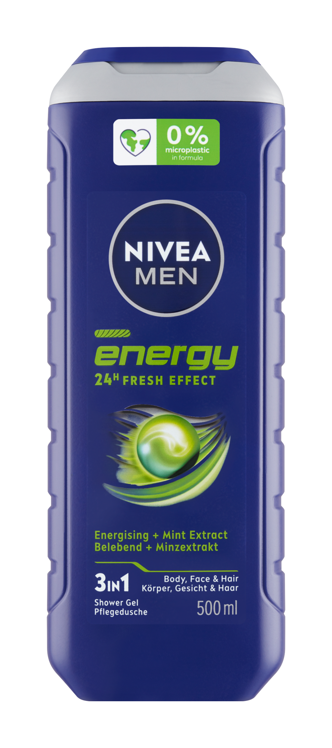 Sprchový gel 3 v 1 na tělo, tvář a vlasy s osvěžující vůní a přírodní mátou. 99 % složení je biologicky rozložitelné (na základě OECD nebo ekvivalentních metod). Bez mikroplastů.
