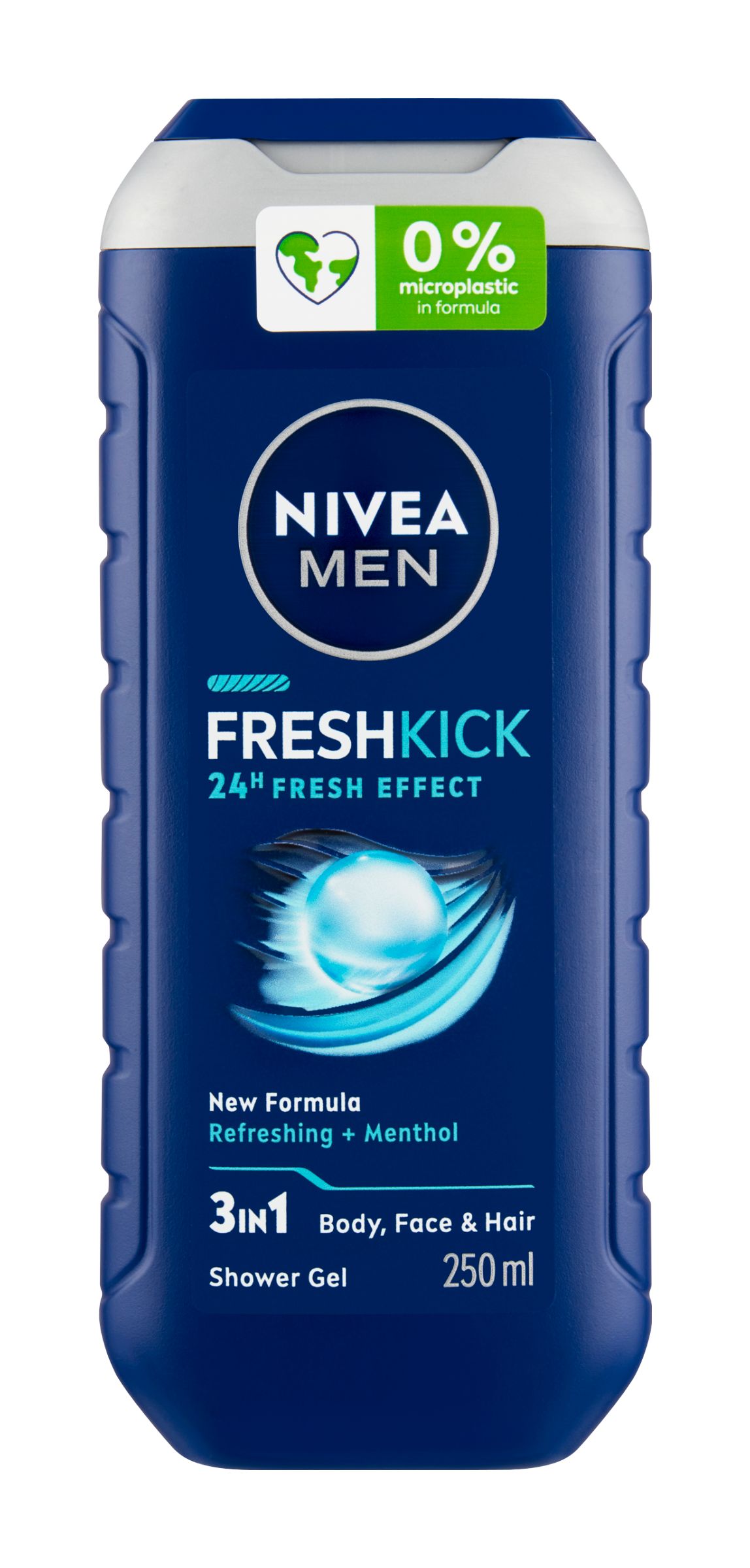 Sprchový gel 3 v 1 na tělo, tvář a vlasy s chladivým mentolem a svěží vůní. 99% složení je biologicky rozložitelné (na základě OECD nebo ekvivalentních metod).