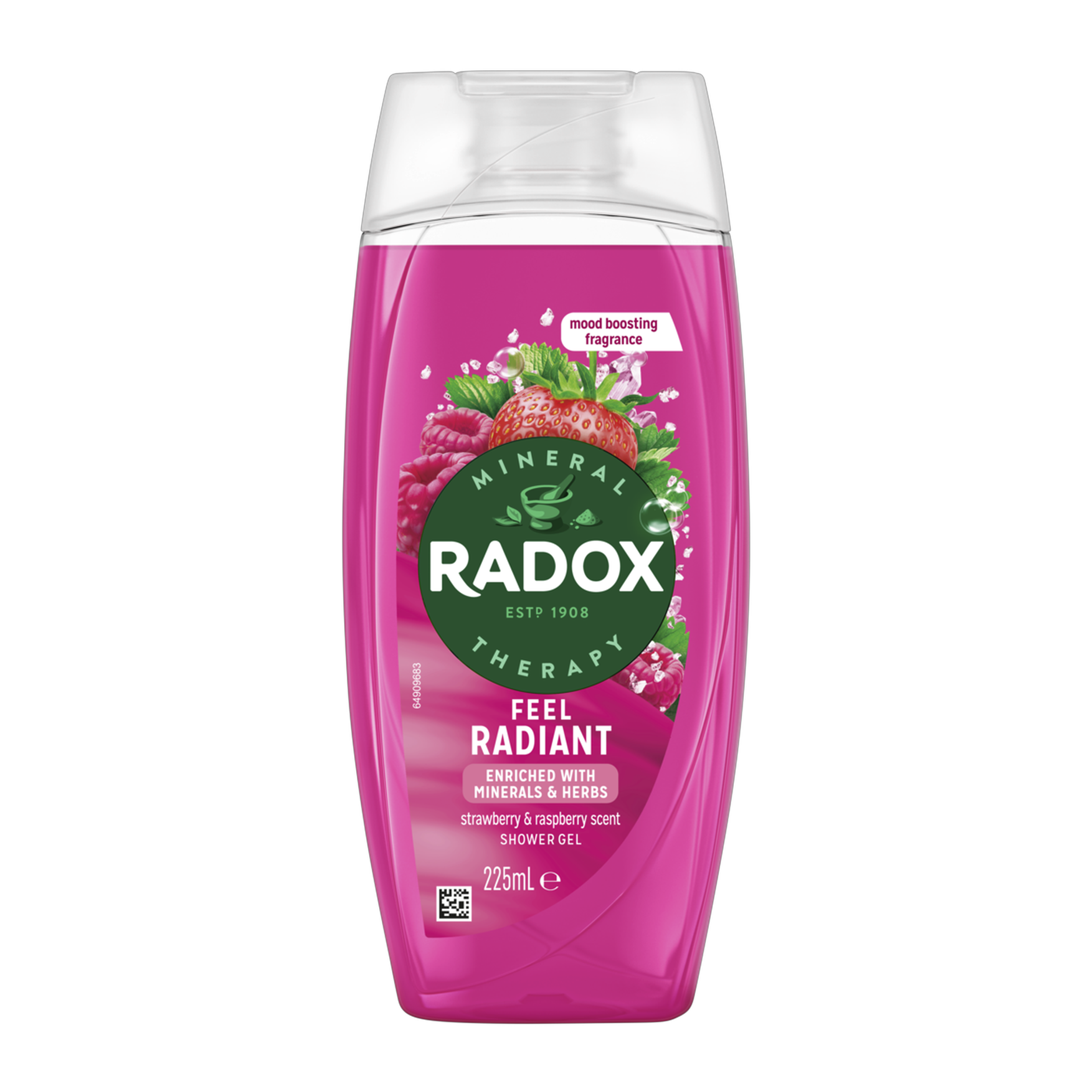 Sprchový gel Radox Feel Radiant s jahodou a malinou přináší osvěžující sprchový zážitek, který oživí vaše smysly. Obsahuje jedinečnou směs minerálů a bylin, které se aktivují horkou vodou a pomáhají důkladně očistit a osvěžit pokožku. Je obohacený o vůni jahod a malin, která zlepšuje náladu. Tento sprchový gel je pH neutrální, vhodný pro každodenní použití a všechny typy pokožky.