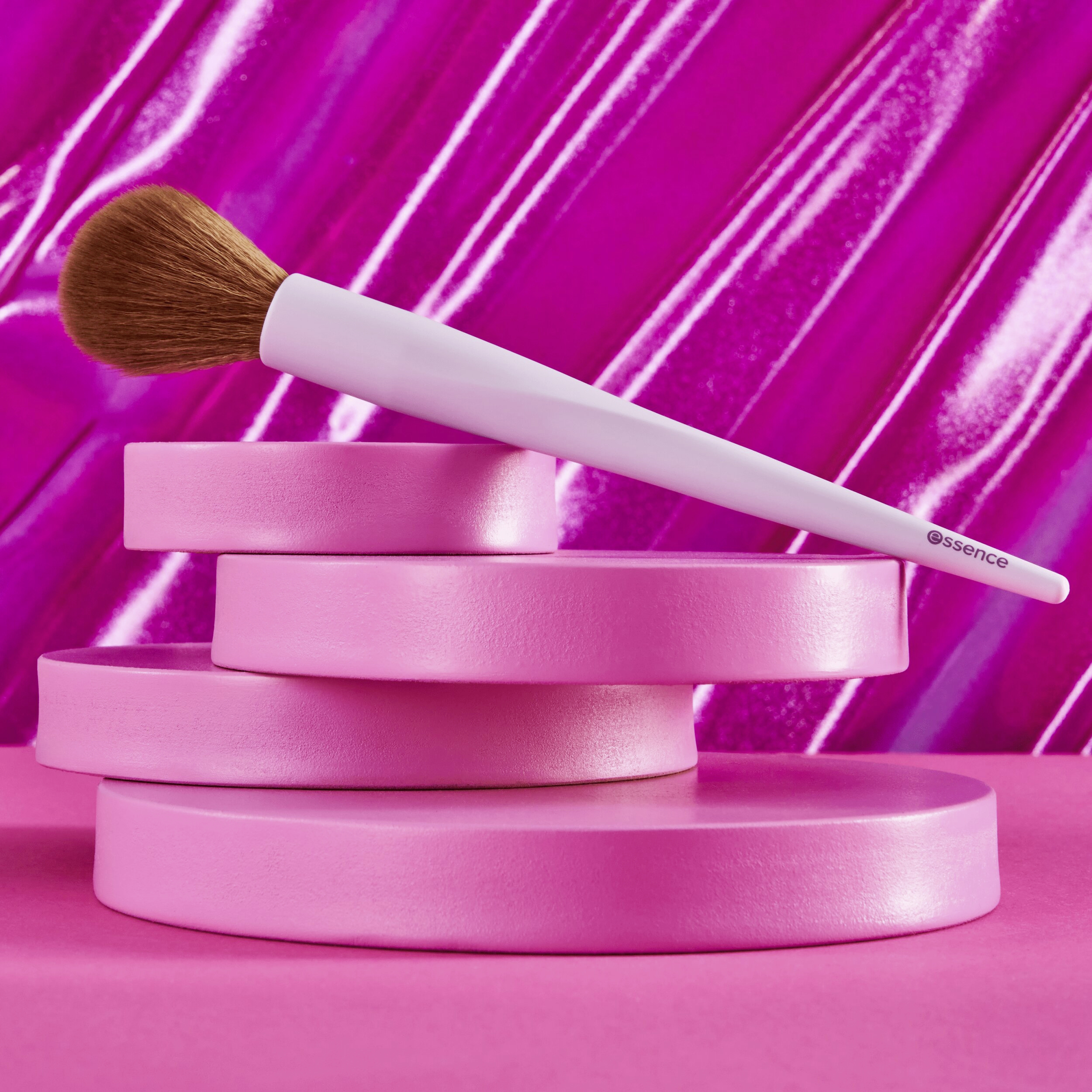 Perfektní pomocník: s essence štětcem na tvářenku a rozjasňovač 01 It's glow time snadno nanesete tvářenku a rozjasňovač. Tvar tohoto štětce na tvářenku a rozjasňovač je ideální pro vytvoření dokonalého make-upu. Díky jemným štětinkám a rukojeti hebké na dotek můžete snadno a jemně nanášet tvářenku a rozjasňovač a také je dokonale zapracovat. Štětec zaujme jedinečným tvarem a barvou. Kromě toho je jeho rukojeť vyrobena ze 100% recyklovaného materiálu.