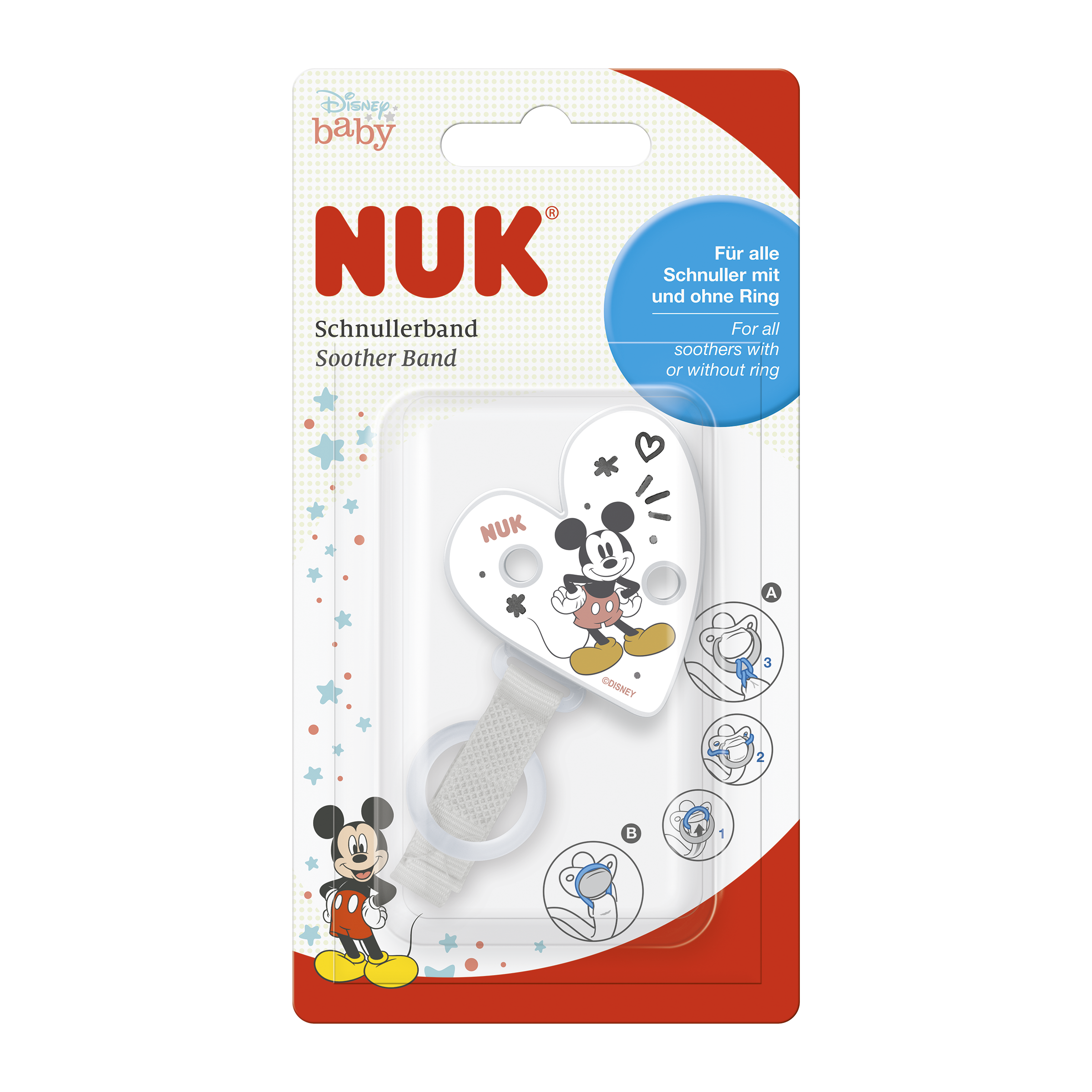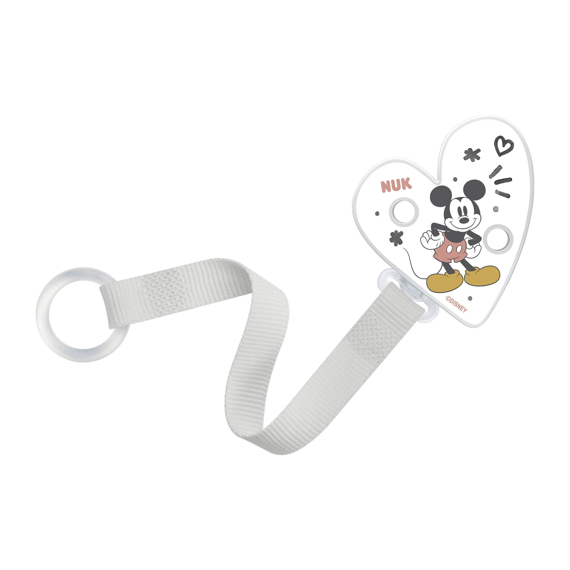 Fixační kroužek s duální funkcí vyroben z pružného silikonu. Praktický klip pro snadnou fixaci jednou rukou . Knoflík vyrobený z vysoce kvalitního tritanu, stužka vyrobena z pružného textilu. S motivem Mickeyho Mouse Populární Disney postavičky Mickey a Minnie Mouse Světoznámé Disney postavičky Mickey a Minnie Mouse doprovázejí naše nejmenší v jejich kouzelném každodenním životě. Klasický moderní design zdobí naše oblíbené produkty NUK a potěší malé i velké fanoušky Disney. Ponořte se do jedinečného světa Mickey a Minnie Mouse! NUK Stužka na dudlík: společník, na kterého se můžete spolehnout Zůstaň šťastný maličký. Stužky na dudlíky pomáhají zabraňovat slzičkám, postarají se o to, že milovaný dudlík zůstane tam, kde má být. Praktický klip systém umožňuje jednoduše připevnit stužku na dětské oblečení jednou rukou. Samozřejmostí je, že dokonale ladí s designem dudlíků NUK a nemá ostré rohy ani okraje. Díky flexibilnímu silikonovému kroužku může být NUK stužka na dudlík bezpečně připevněna k dudlíku s kroužkem i bez kroužku. NUK Stužka na dudlík z pružného textilu zaujme svou duální funkcí.