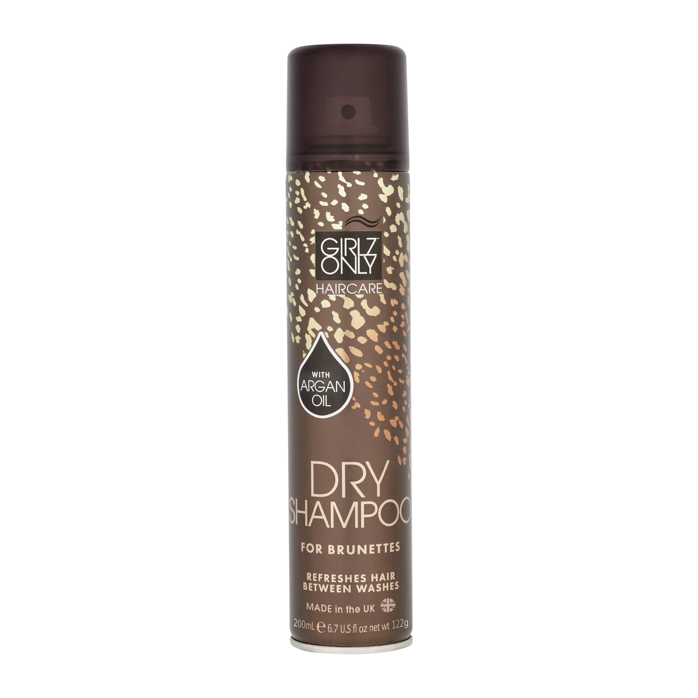 Suchý šampon Girlz Onlly s obsahem arganového oleje na hnědé vlasy.
