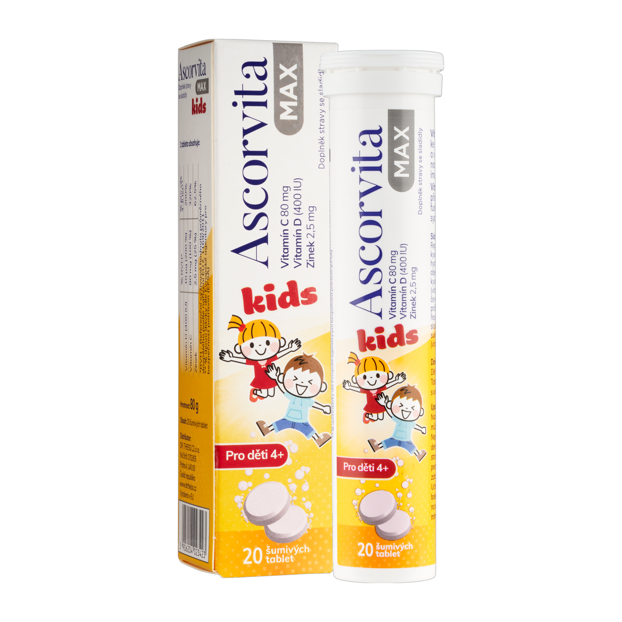 Vlastnosti šumivých tablet pro děti Ascorvita Max: