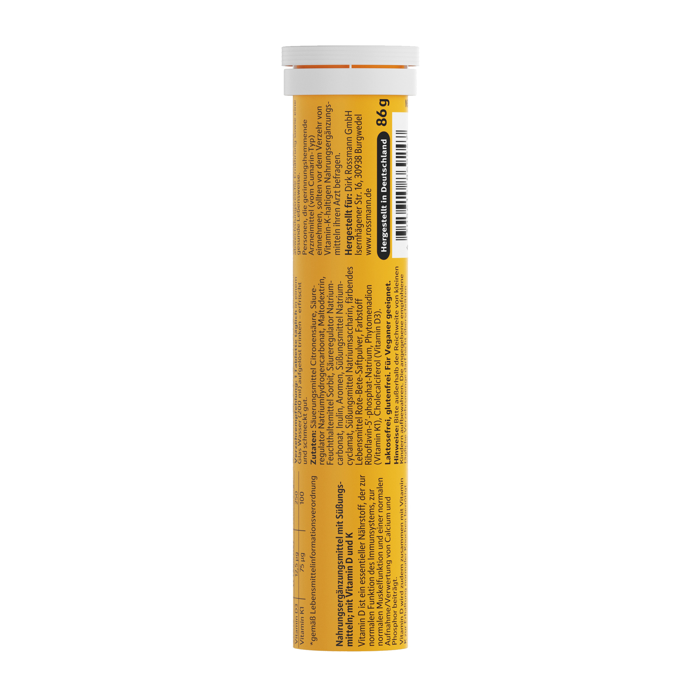 - Šumivé tablety s příchutí manga a rakytníku s vitaminem D a K, se sladidly, doplněk stravy.