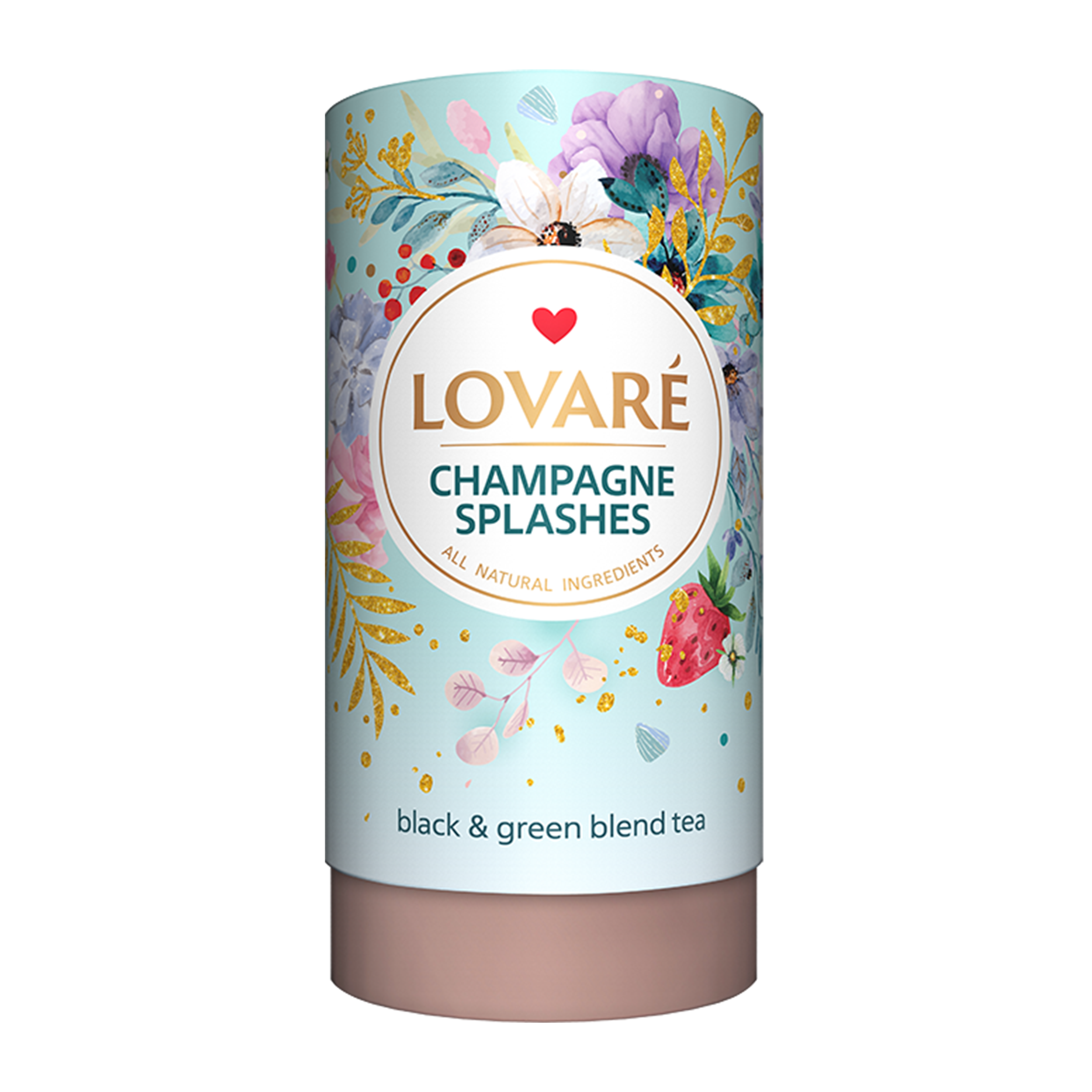 Vyzkoušejte noblesní čaj Lovaré Champagne Splashes, který propojuje bohatou chuť cejlonského černého čaje s jemností čínského zeleného čaje Sencha a nádechem lesních jahod. Tato jedinečná směs přináší harmonii chutí, ve které se mísí bohaté a plné tóny cejlonského čaje s jemnými akcenty zeleného čaje Sencha. Sušené kousky lesních jahod, goji berry a okvětní lístky chrpy polní dodávají čaji jemnou sladkost a květinovou vůni, zatímco přírodní příchuť lesních jahod obohacuje každou kapku o svěží ovocný nádech. Lovaré Champagne Splashes je ideální pro chvíle, kdy si chcete dopřát něco výjimečného a elegantního.