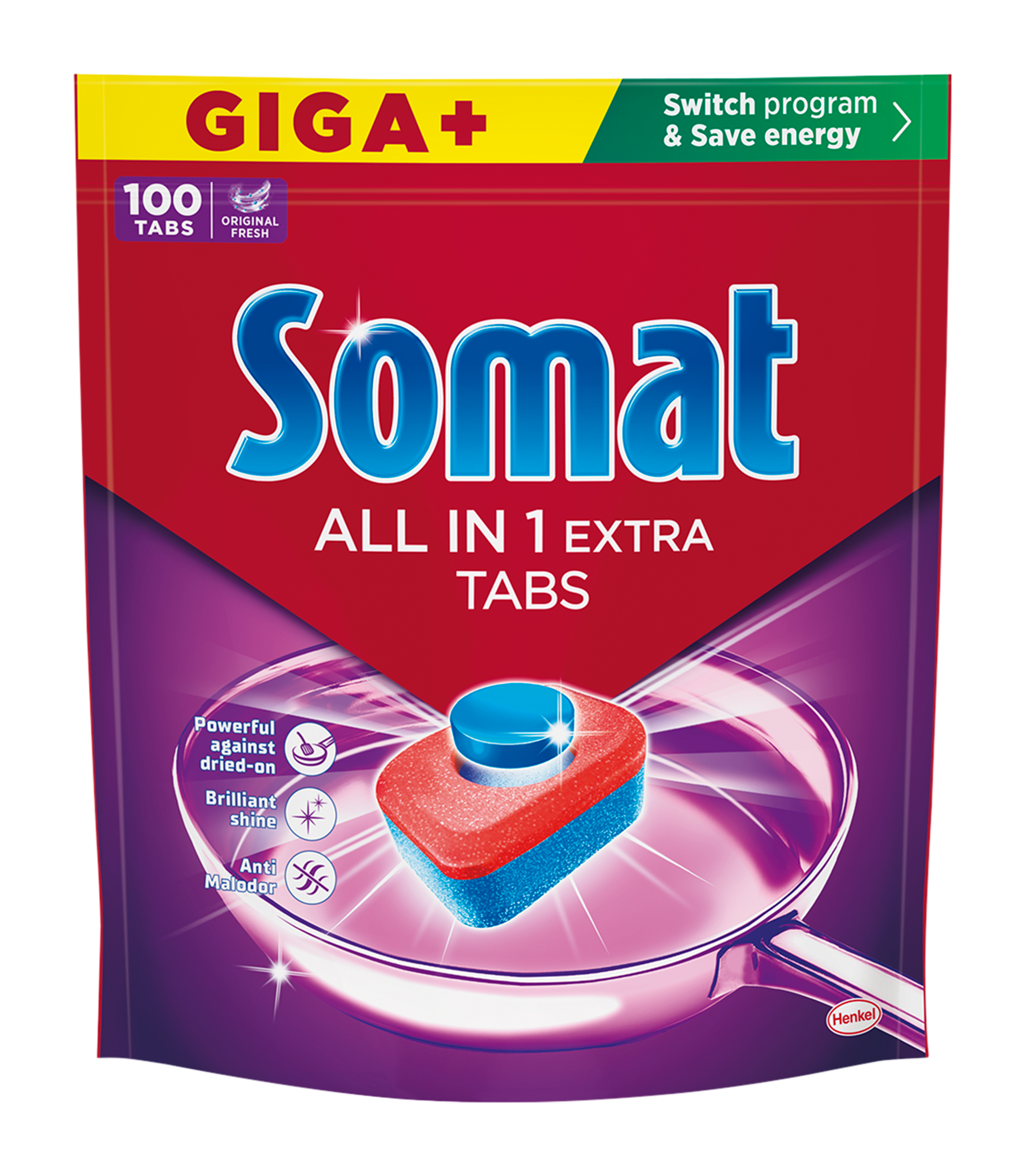 - PŘEPNĚTE PROGRAM A UŠETŘETE: Tablety na nádobí Somat All-in-1 Extra jsou určeny pro krátké a eco programy s nízkou teplotou. Vysoce aktivní složení efektivně myje nádobí i při nízkých teplotách a šetří energii až o 20 %*.
