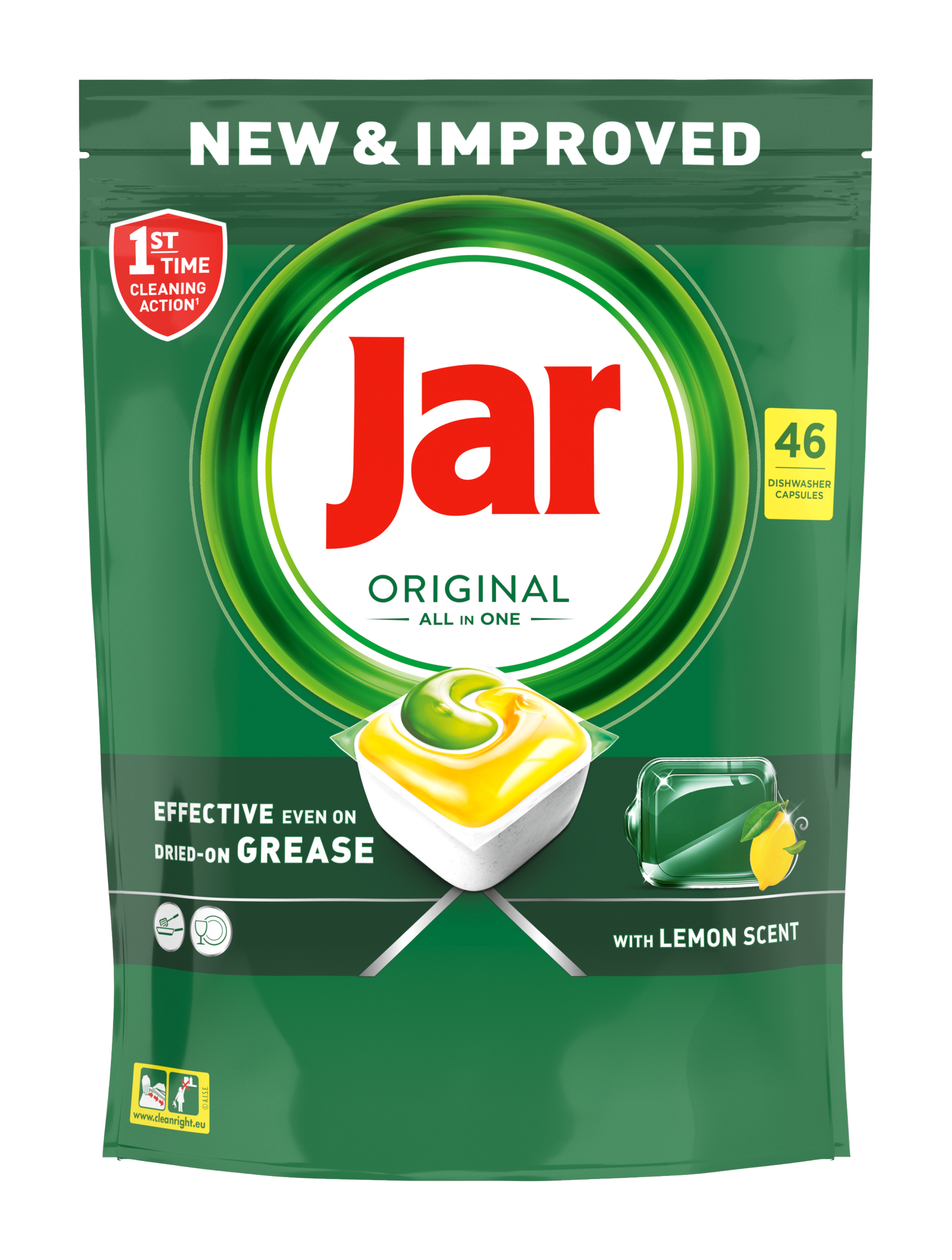 - Tablety do myčky Jar Original jsou účinné hned při 1. umývaní a odstraňují i zaschlou mastnotu