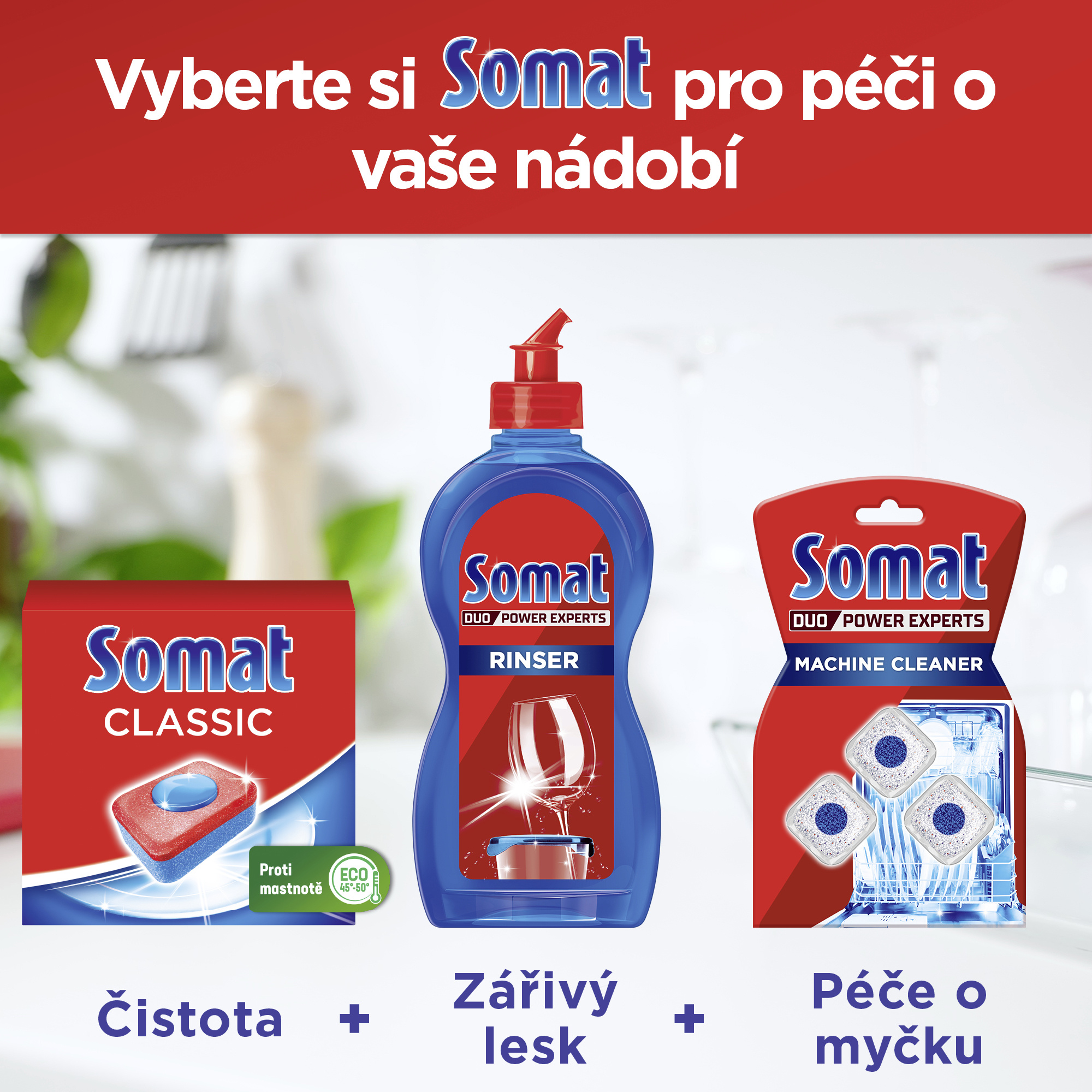 - PRO NEJLEPŠÍ VÝSLEDKY: Pro dosažení nejlepších výsledků používejte tablety Somat Classic společně se Somat speciální solí a Somat leštidlem