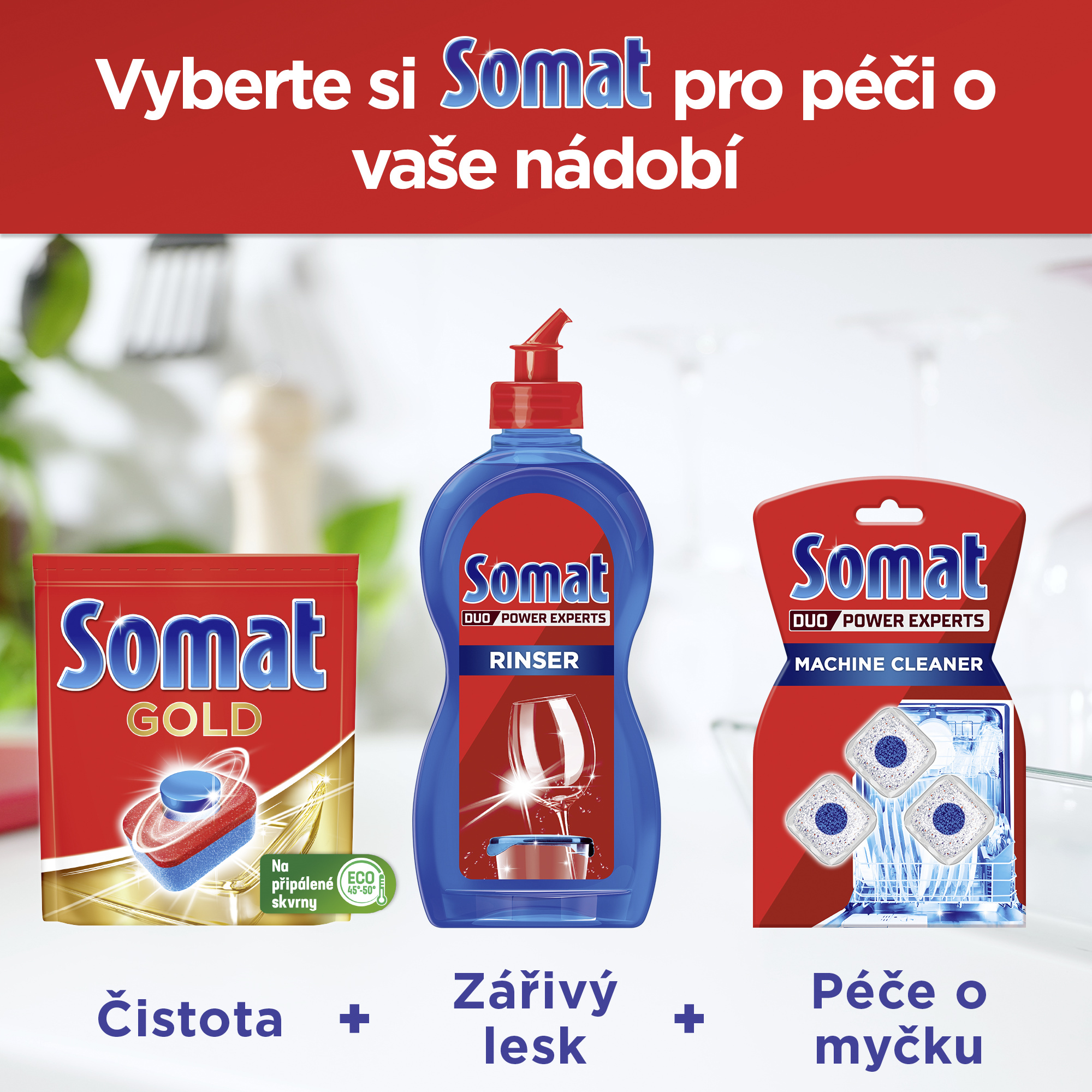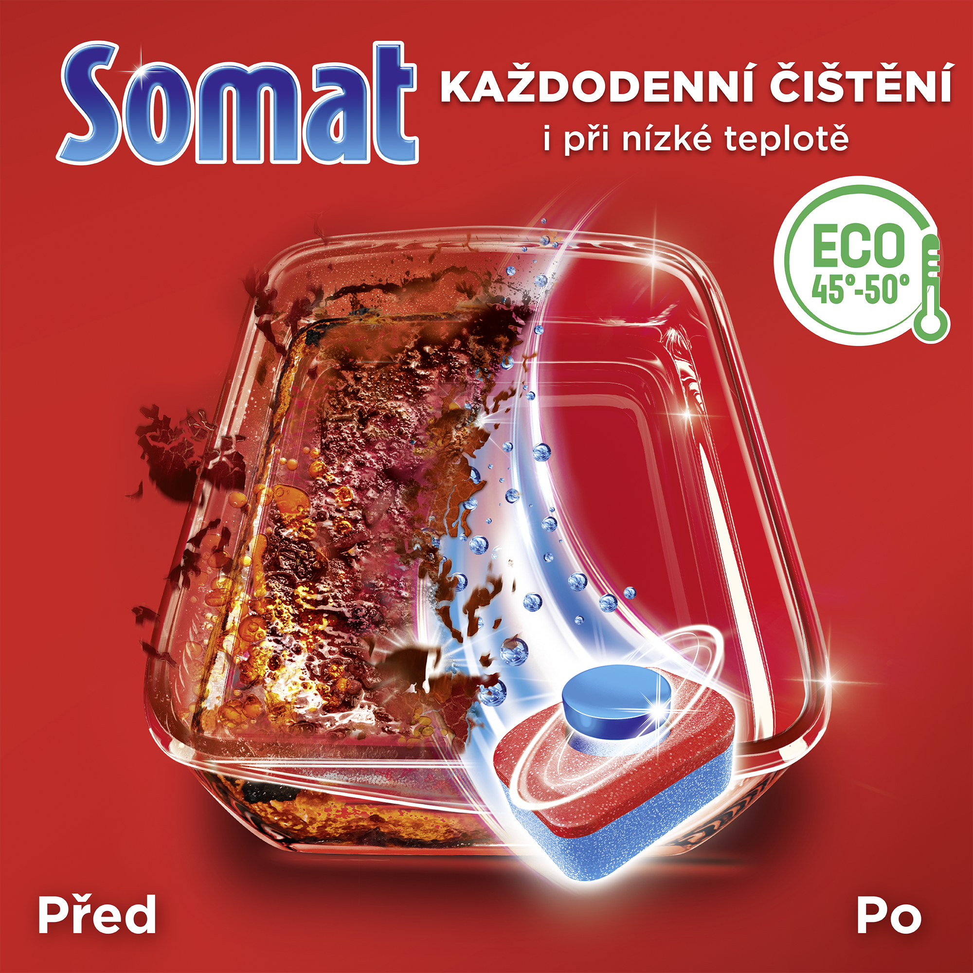 - SILNÝ ČISTICÍ ÚČINEK: Tablety do myčky Somat odstraňují i ty nejodolnější připálené zbytky jídla a zanechávají nádobí zářivě čisté, a to i na eco program s nízkou teplotou.