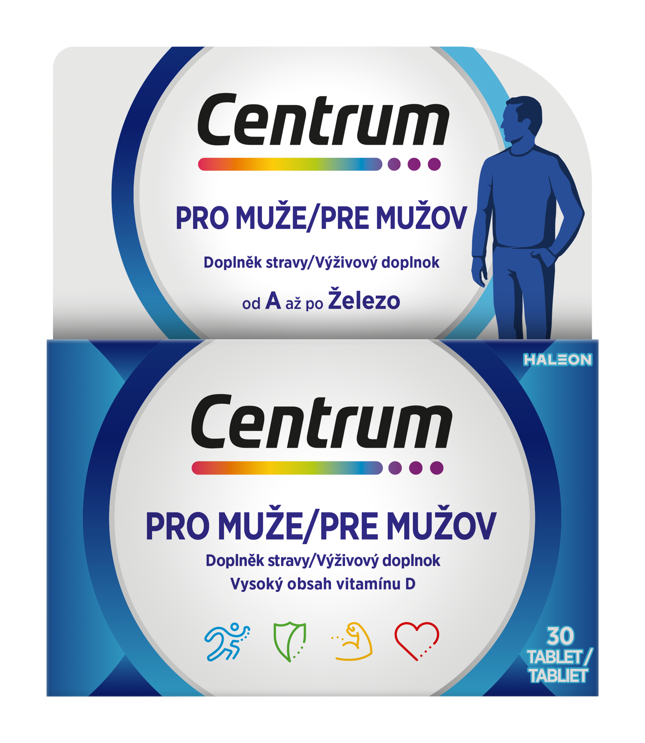 Hydrogenfosforečnan vápenatý, Oxid hořečnatý, Uhličitan vápenatý, Plnidla: mikrokrystalická celulosa, hydroxypropylmethylcelulosa, polydextrosa, Vitamín C (kyselina L-askorbová), Protispékavé látky: zesíťovaná sodná sůl karboxymethylcelulosy, hořečnaté soli mastných kyselin, oxid křemičitý, talek, Vitamín E (DL-alfa-tokoferylacetát), Nikotinamid, Fumarát železnatý, D-pantothenát vápenatý, Oxid zinečnatý, Vitamín B6 (pyridoxin-hydrochlorid), Vitamín B1 (thiamin-mononitrát), Vitamín B2 (riboflavin), Betakaroten, Rostlinný olej (kokosový a palmový), Síran měďnatý, Vitamín A (retinyl-acetát), Kyselina listová (kyselina pteroylmonoglutamová), Chlorid chromitý, Molybdenan sodný, Jodid draselný, Selenan sodný, Biotin (D-biotin); vitamín K (fylochinon), Vitamín D (cholekalciferol), Vitamín B12 (kyanokobalamin), Barvivo: indigotin