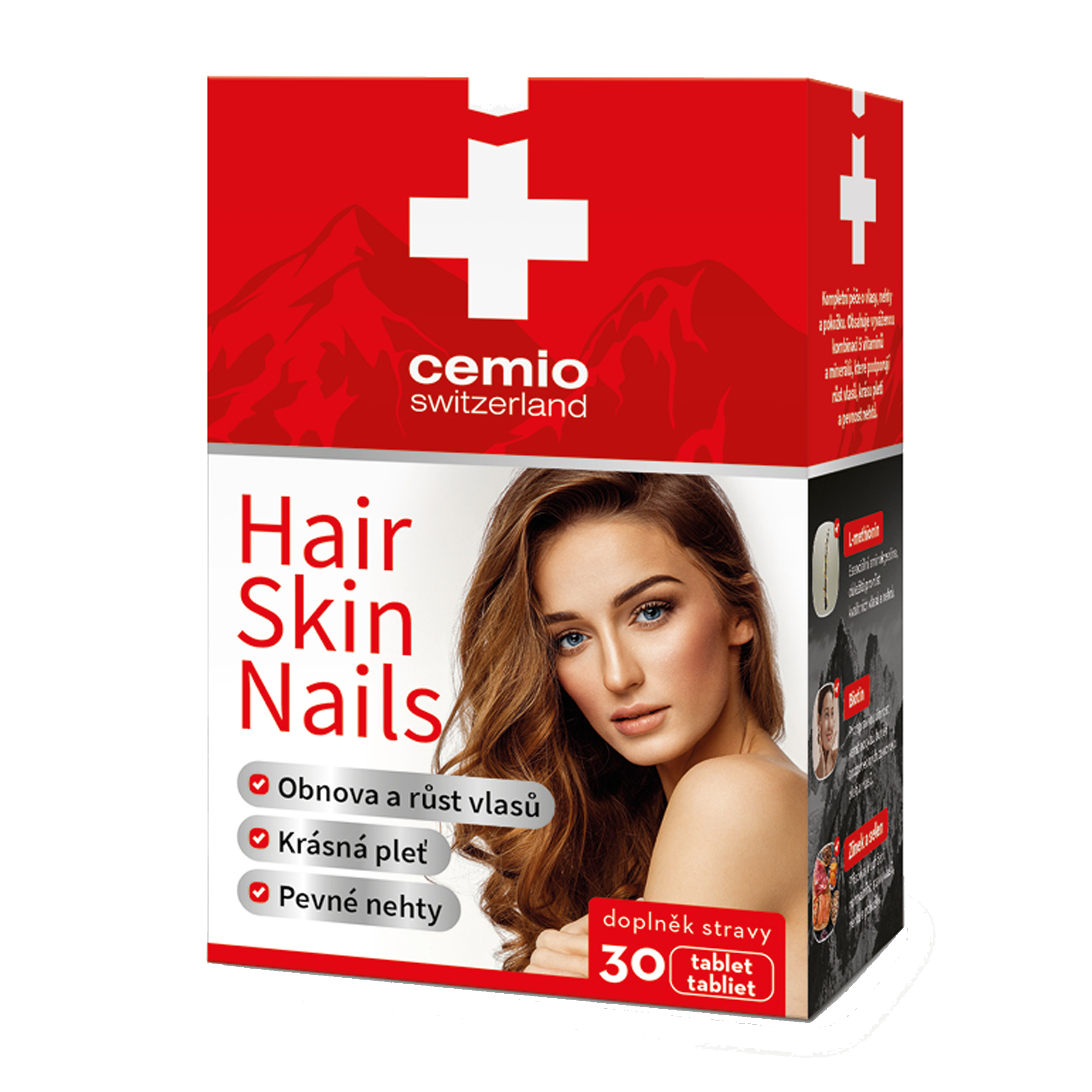 Cemio Hair, skin, nails, 30 tbl. je skvělou volbou pro všechny, kteří hledají multivitaminový doplněk stravy pro komplexní péči o vlasy, pokožku a nehty. Obsahuje vyváženou kombinaci 5 vitaminů a minerálů, které podporují růst vlasů, krásu pleti a pevnost nehtů. Obsahuje vyváženou kombinaci 5 vitaminů a minerálů, které podporují přirozený růst vlasů a eliminují jejich vypadávání. Dodávají navíc vlasovým folikulům potřebnou výživu zevnitř. Přispívají také k pevnosti, pružnosti a celkové kvalitě pokožky. Zároveň pomáhají ke zdravému růstu nehtů, eliminují třepení a lámání nehtů.