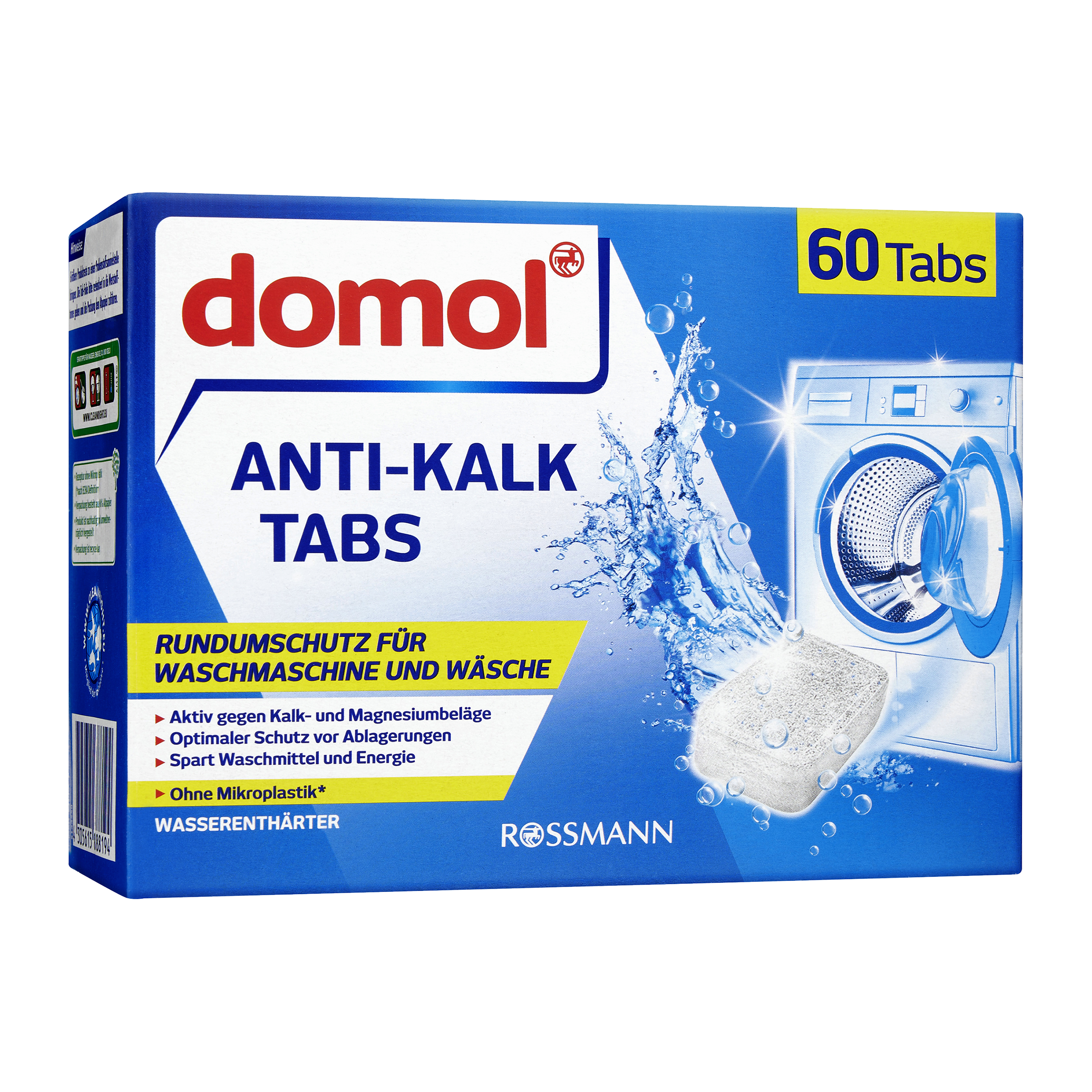 Těšte se na spolehlivou ochranu pračky před vodním kamenem. Tabulky domol proti vodnímu kameni snižují hromadění nečistot a zbytků pracího prostředku, které způsobují zápach, ve vaší pračce. Tabulky nejenže chrání vaši pračku, trubky, trubky a prádlo, ale také šetří prací prostředek a energii, protože stačí dávkovat pouze pro měkkou vodu - bez ohledu na to, jak tvrdá je vaše voda.