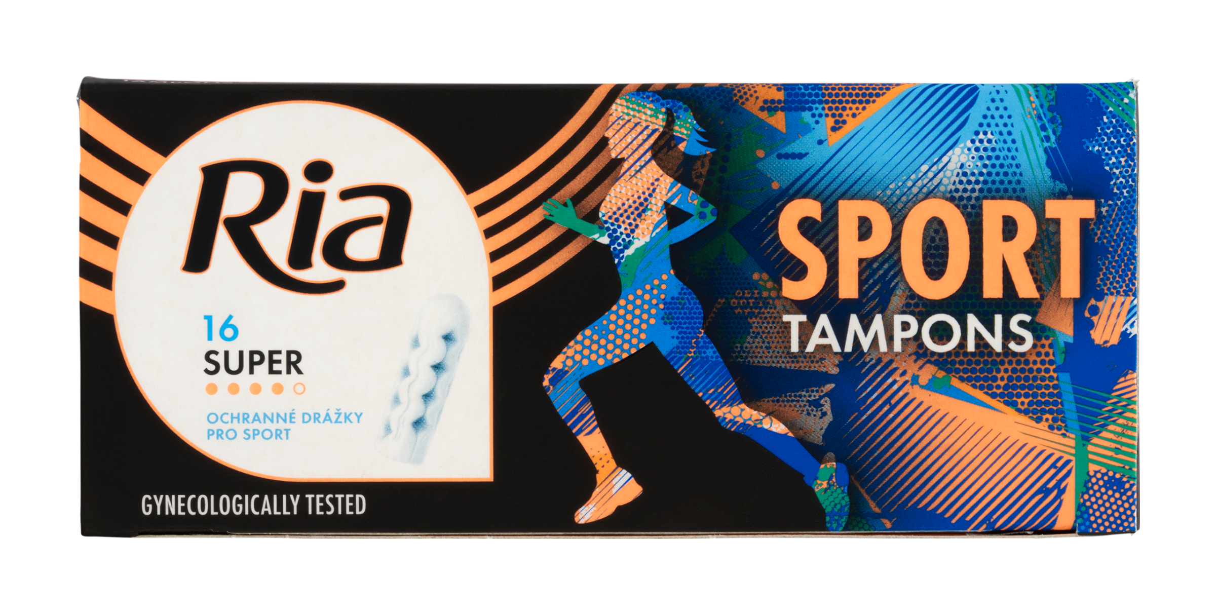 Běhej, skákej, sportuj! I během menstruace překonávej výzvy. Dnes, stejně jako každý jiný den. Ria Sport tampony byly navrženy pro sport. Díky speciálním ochranným drážkám se dokonale přizpůsobí tvému tělu a ochrání tě před protečením i při zvýšené zátěži. S Ria Sport tampony to dáš i tentokrát. Nedej se zastavit ani během svých dnů.