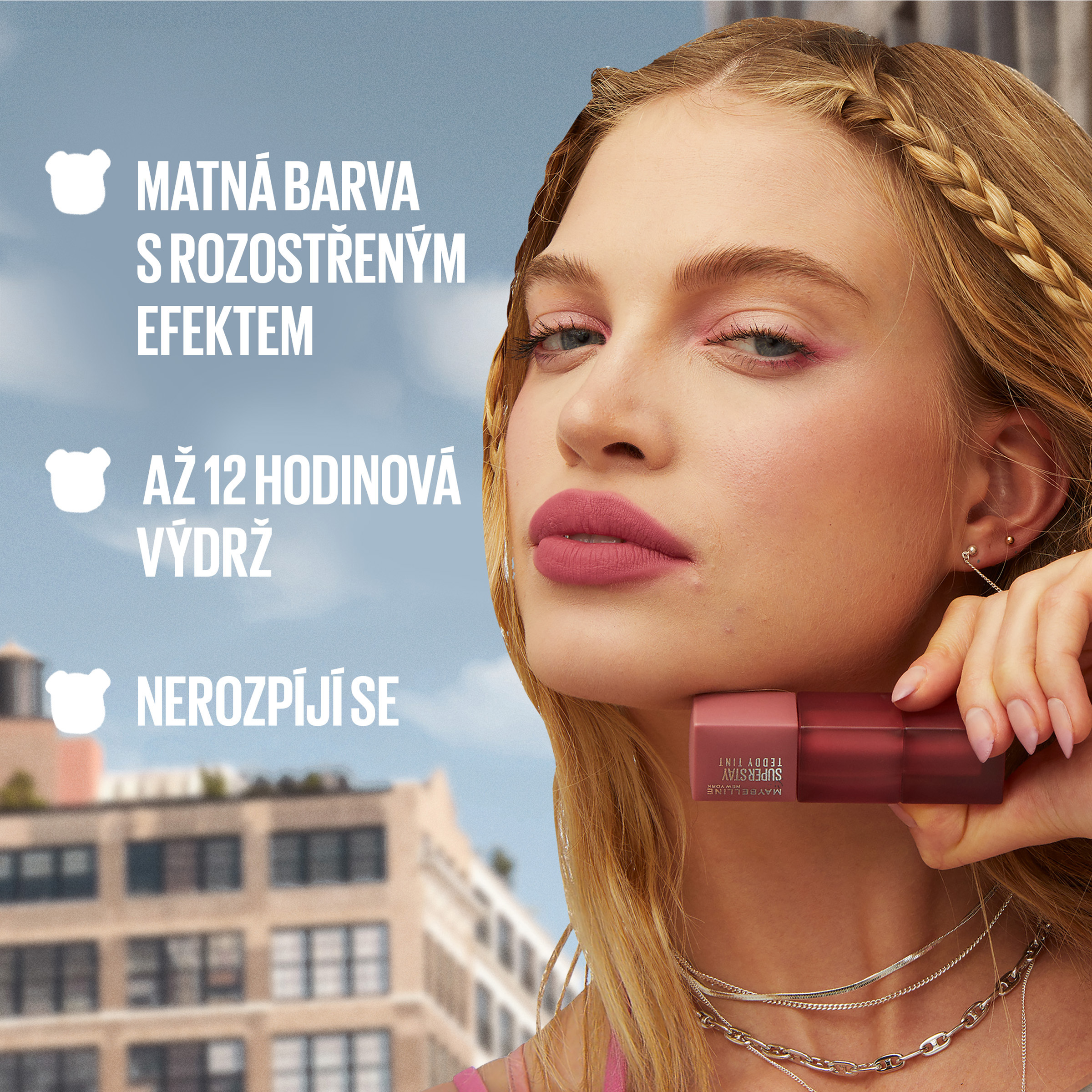 Objevte lehkost a dlouhotrvající výdrž tekutého tintu na rty s hladce matným efektem v oblíbeném odstínu Kneehigh. Maybelline Super Stay Teddy Tint vám dopřeje až 12 hodin komfortního nošení a sametově hebké rty. Odolný proti rozmazání a obtisknutí. Vyzkoušejte ho a zažijte pocit dokonalých rtů po celý den.
