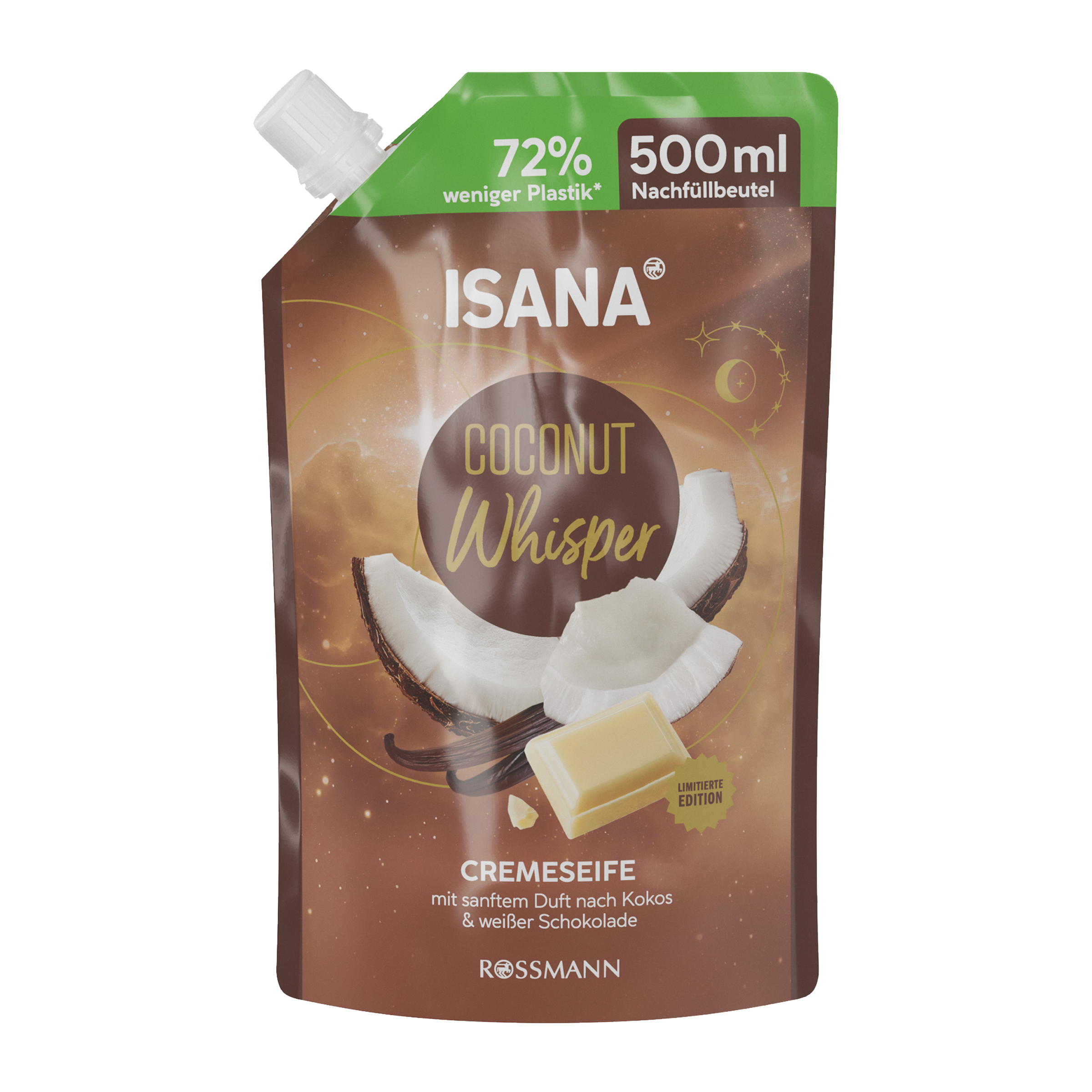 Dopřejte si pocit pohodlí a hýčkání! Nechte jemnou vůni vanilky, kokosu a bílé čokolády rozmazlovat vaše smysly. Váš osobní únik začíná právě teď – s krémovým mýdlem ISANA Coconut Whisper.