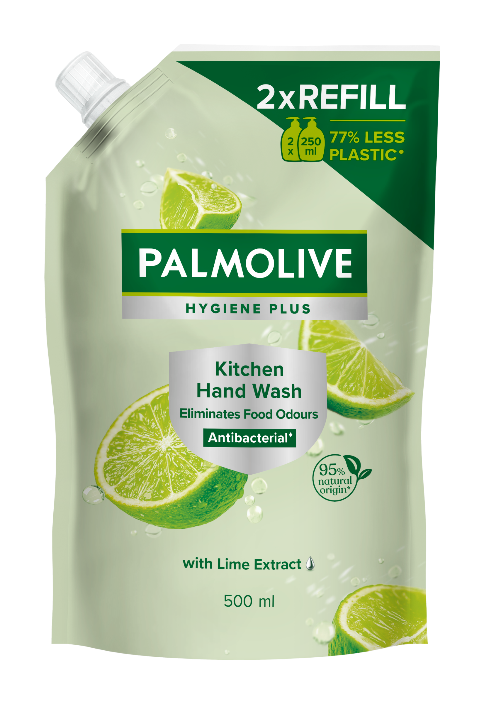 Tekuté mýdlo Palmolive Hygiene Plus Kitchen s přírodní antibakteriální složkou smyje bakterie vyskytující se zejména v kuchyni a chrání vaší pokožku. Toto nádherné voňavé tekuté mýdlo na ruce bylo promyšleně vytvořeno se složkami z 95% přírodního původu* a je z 97% biologicky rozložitelné. Chrání ruce před bakteriemi a zanechává je hygienicky čisté a zároveň zklidňuje vaši pokožku. Toto tekuté mýdlo od Palmolive obsahuje výtažek z limetky, je obohaceno o hydratační látky a je dermatologicky testováno, aby se o vaše ruce efektivně staralo. Palmolive se věnuje nejen šetrné péči o vaši pokožku, ale věnuje se také zodpovědnému získávání zdrojů** a toto tekuté mýdlo bylo vyrobeno v certifikovaném zařízení True Zero Waste Facility.