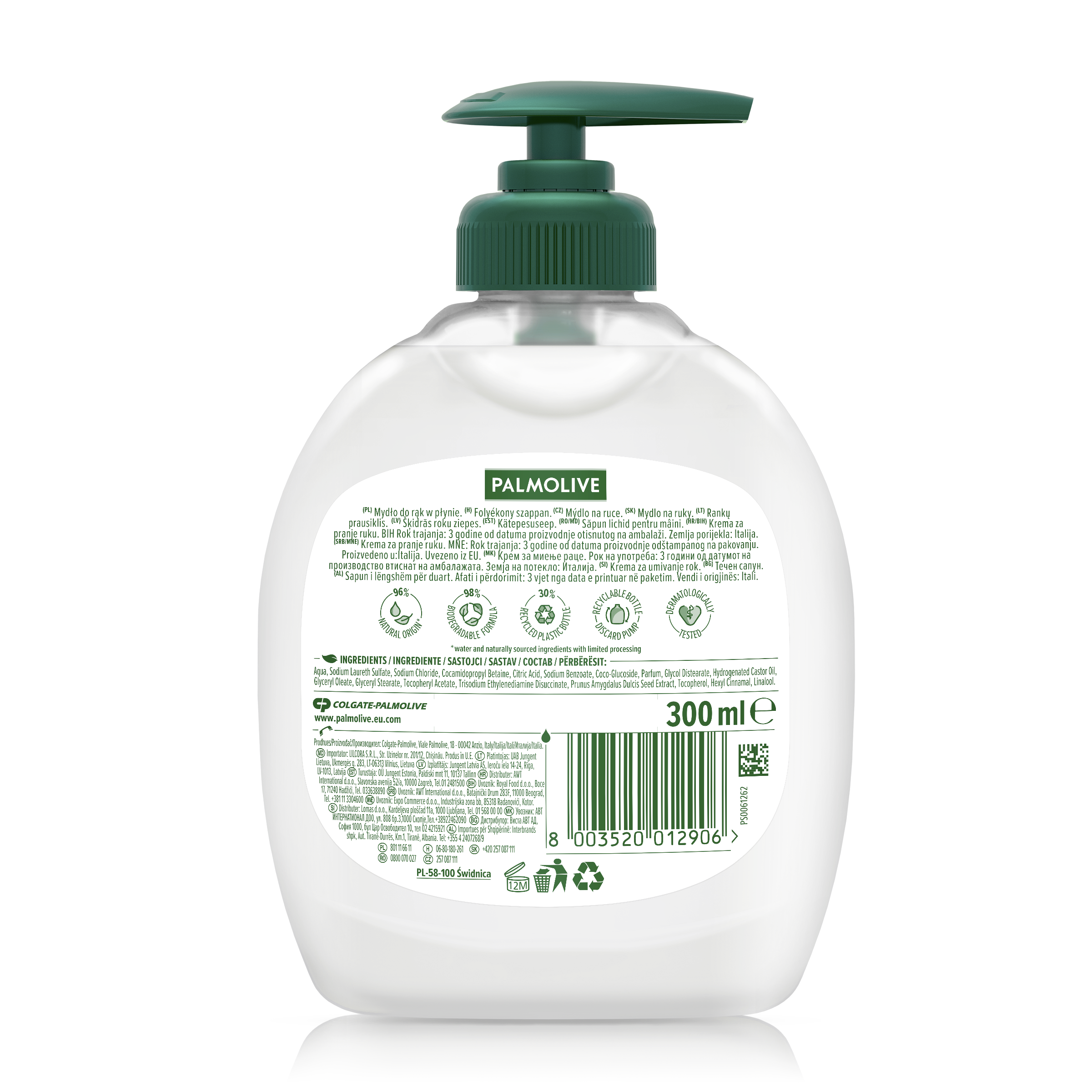 Dopřejte si nádherně voňavé mytí rukou s tekutým mýdlem na ruce Palmolive Naturals Almond Milk. Toto mýdlo na ruce s oříškovou vůní mandlí a mandlovým mlékem bylo inspirováno přírodou, aby potěšilo vaše smysly, a je obohaceno o vitamin E, který udržuje vaše ruce hebké a vyživené při každém mytí. Toto veganské mýdlo obsahuje nejen rostlinné mléko, ale je také vyrobeno ze složek, které jsou z 96 % z přírodních zdrojů*. Jelikož se jedná o šetrné mýdlo na ruce, má 98% biologicky odbouratelné složení a dodává se v láhvi, kterou lze po vyjmutí pumpičky recyklovat. Tekuté mýdlo na ruce bylo také dermatologicky testováno. Udržujte své ruce vyživené a s úžasným pocitem s mýdlem Palmolive.