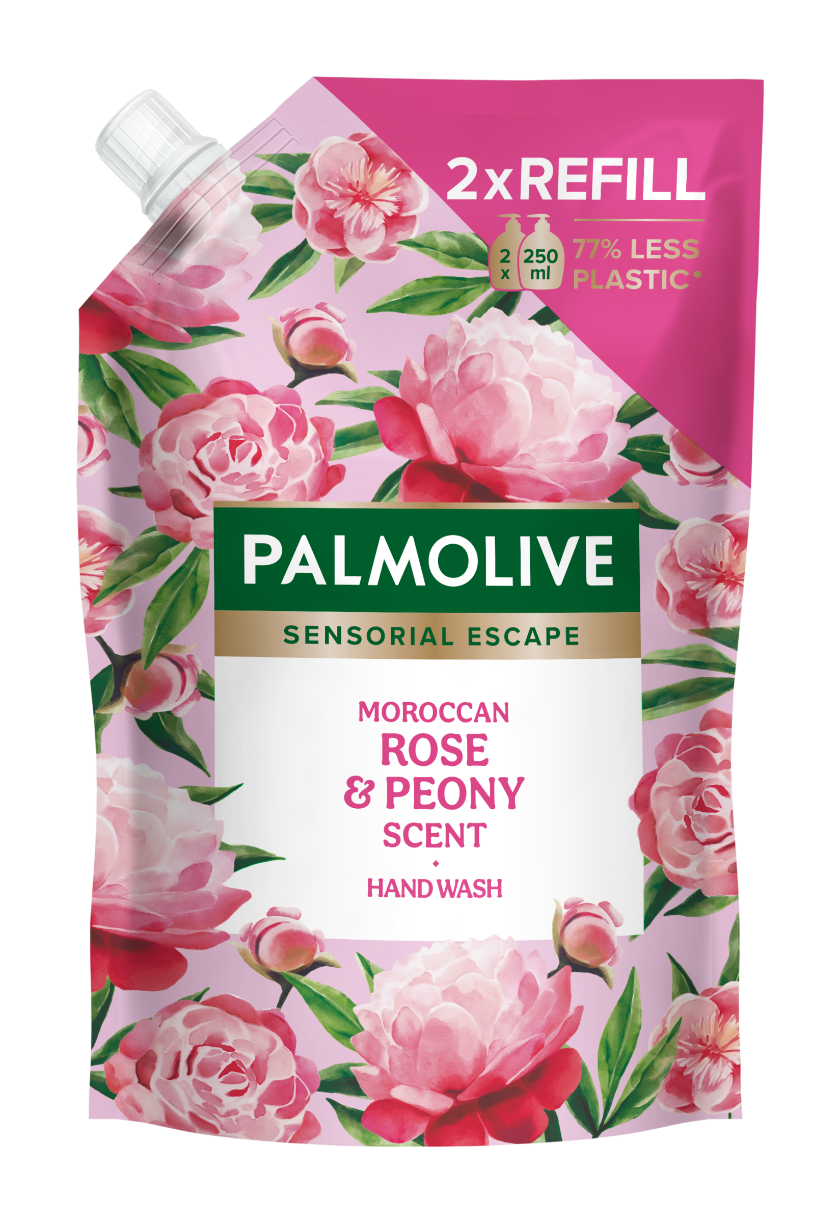Palmolive Sensorial Escape Moroccan Rose & Peony náhradní náplň tekutého mýdla na ruce je jemné tekuté mýdlo pro všechny typy pokožky, které účinně čistí bez vysušování. Má také 98% biologicky odbouratelné složení