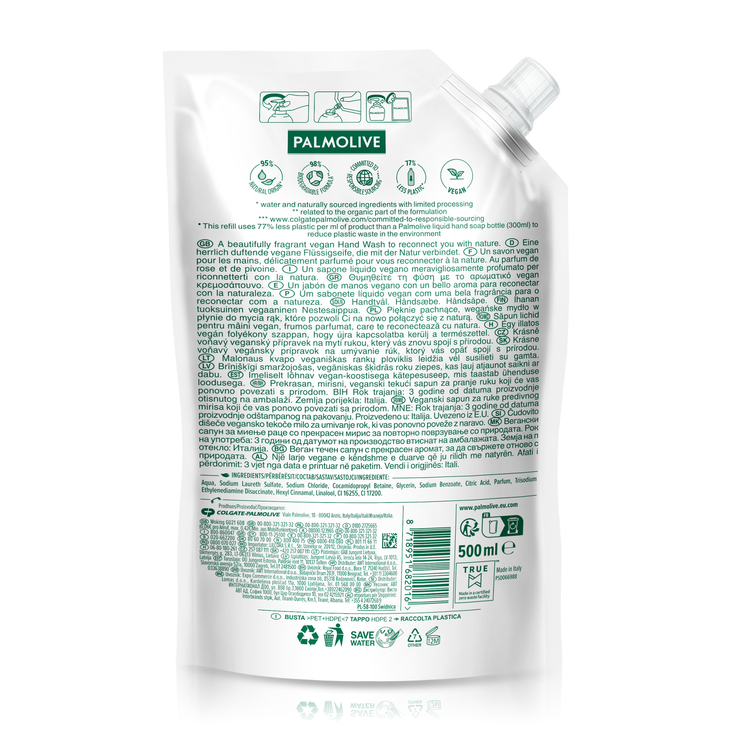 Vezměte své smysly na únik do rozkvetlé marocké zahrady pokaždé, když doplníte svou lahvičku s tekutým mýdlem Palmolive Sensorial Escape Moroccan Rose & Peony náhradní náplní. Tato krásně voňavá náplň do mýdla na ruce je nejen vyrobena s unikátními vůněmi, ale také účinně čistí bez vysušování pro skvělou hygienu rukou. Je to jemné tekuté mýdlo, které je vhodné pro všechny typy pokožky. S ohledem na přírodu je toto veganské mýdlo vyrobeno z 95% přírodních ingrediencí* a má 98% biologicky odbouratelné složení. Aby se snížilo množství plastového odpadu v životním prostředí, tato náplň do mýdla na ruce je balena v obalu, který používá o 77% méně plastu než 300ml lahvička tekutého mýdla na ruce Palmolive. Vychutnejte si chvíli klidu a znovu se propojte s přírodou! *Voda a přírodní ingredience s omezeným zpracováním