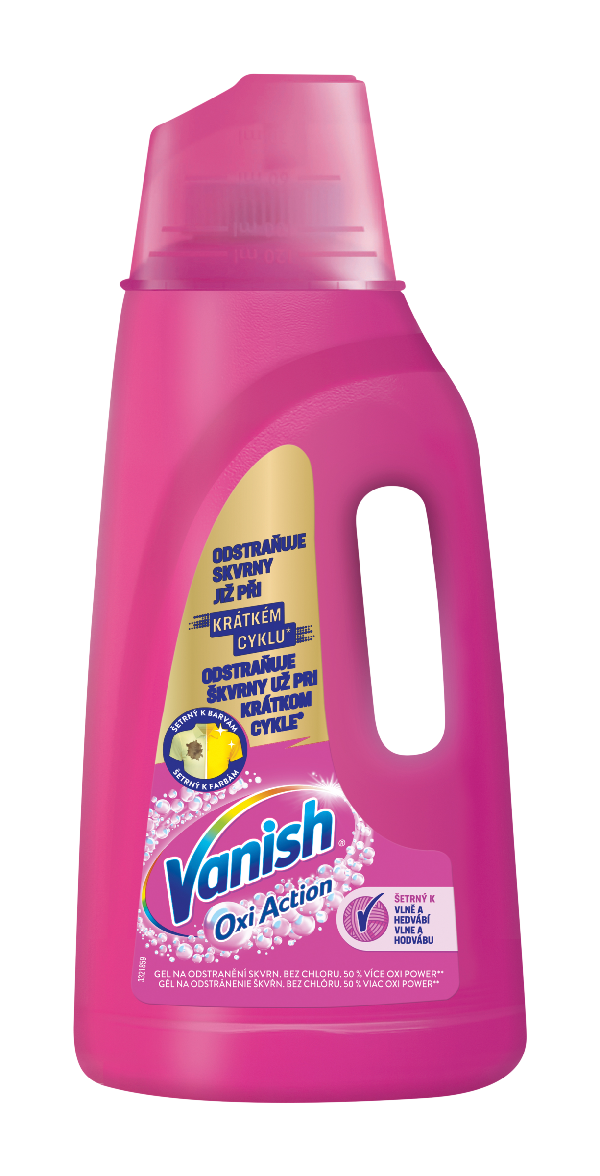 Tekutý odstraňovač skvrn Vanish Oxi Action účinně a šetrně odstraňuje odolné skvrny už při krátkém 60minutovém pracím cyklu. Jeho inovované složení s o 50 % vyšší koncentrací Oxi Power zajišťuje ještě lepší výsledek praní bez nutnosti chloru. Hodí se na barevné i jemné prádlo, včetně vlny a hedvábí. Skvěle doplňuje běžný prací prostředek a cíleně působí na viditelné nečistoty, aniž by poškozoval strukturu tkanin.