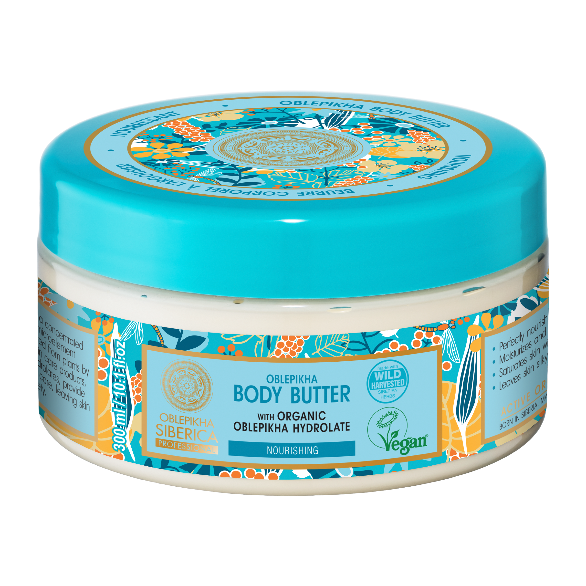 Výživný a hydratační prostředek s bohatou texturou, který zaručí plnohodnotnou péči o suchou a dehydratovanou pokožku těla. Obsažený olej rakytníku altajského hluboce vyživuje, regeneruje a hydratuje. Olej cedrového diblíku nasycuje pokožku důležitými mastnými kyselinami, potřebnými pro její výživu. Olej plodů jeřábu sibiřského pokožku skvěle hydratuje, dodává ji jemnost a pohodlí.