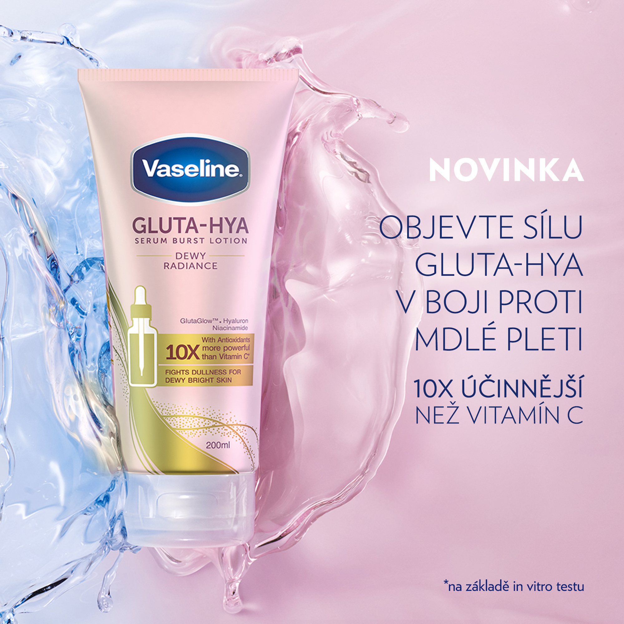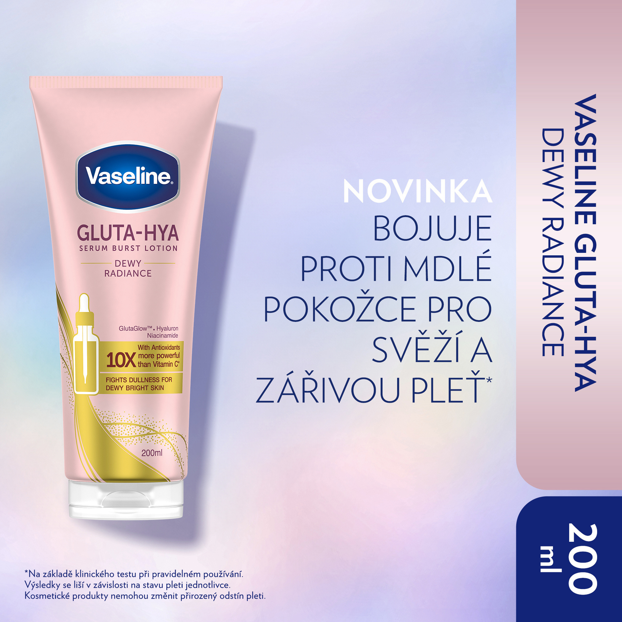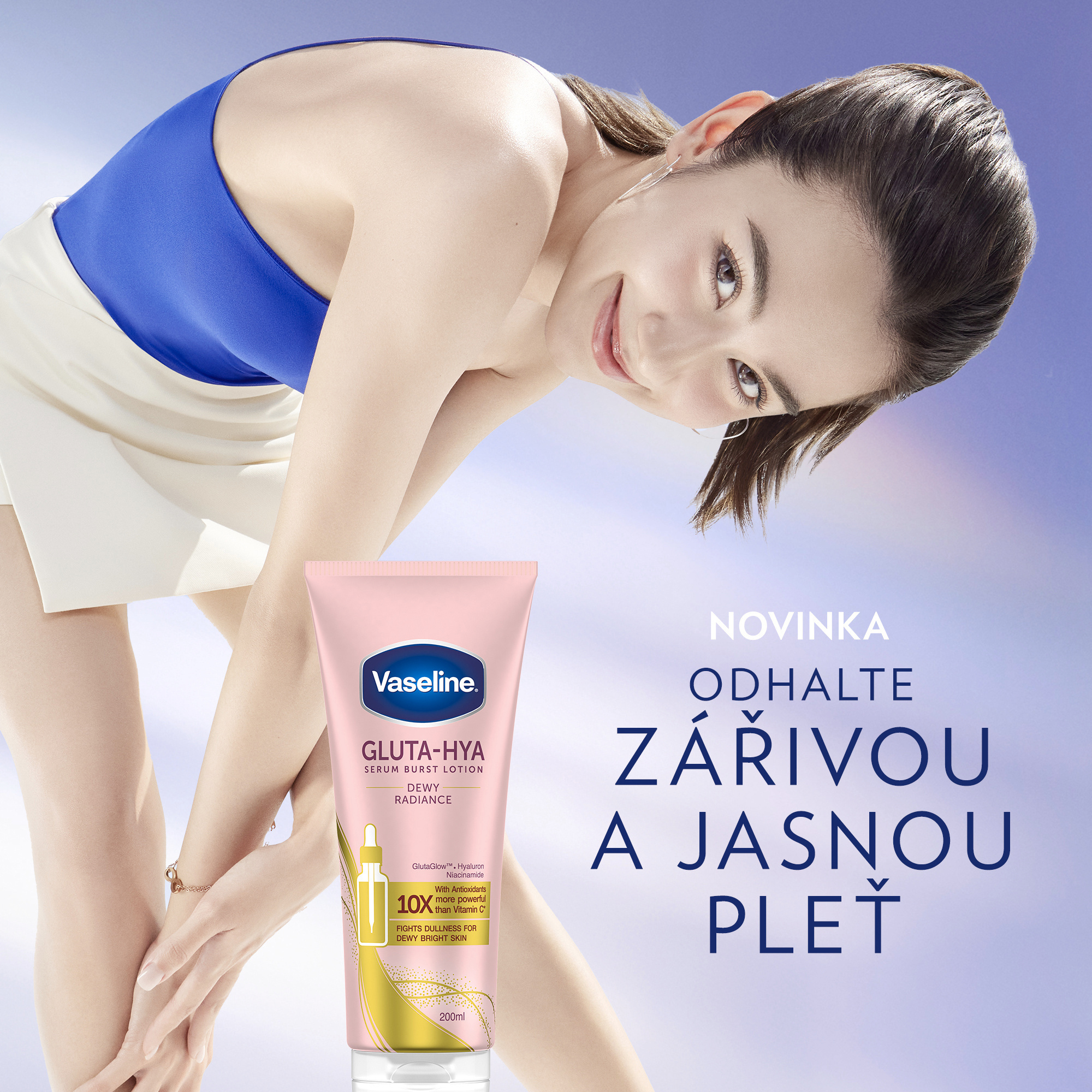 Tělové sérum Gluta-Hya Dewy Radiance od Vaseline přináší intenzivní rozjasnění a hydrataci pro všechny typy pokožky. Jeho lehké složení s inovativními aktivními látkami zajišťuje viditelně zdravější, pružnější a zářivější pleť už po několika dnech používání. Díky technologii GlutaGlow podporuje přirozenou obranyschopnost pleti proti škodlivým vlivům a napomáhá obnově její vitality.