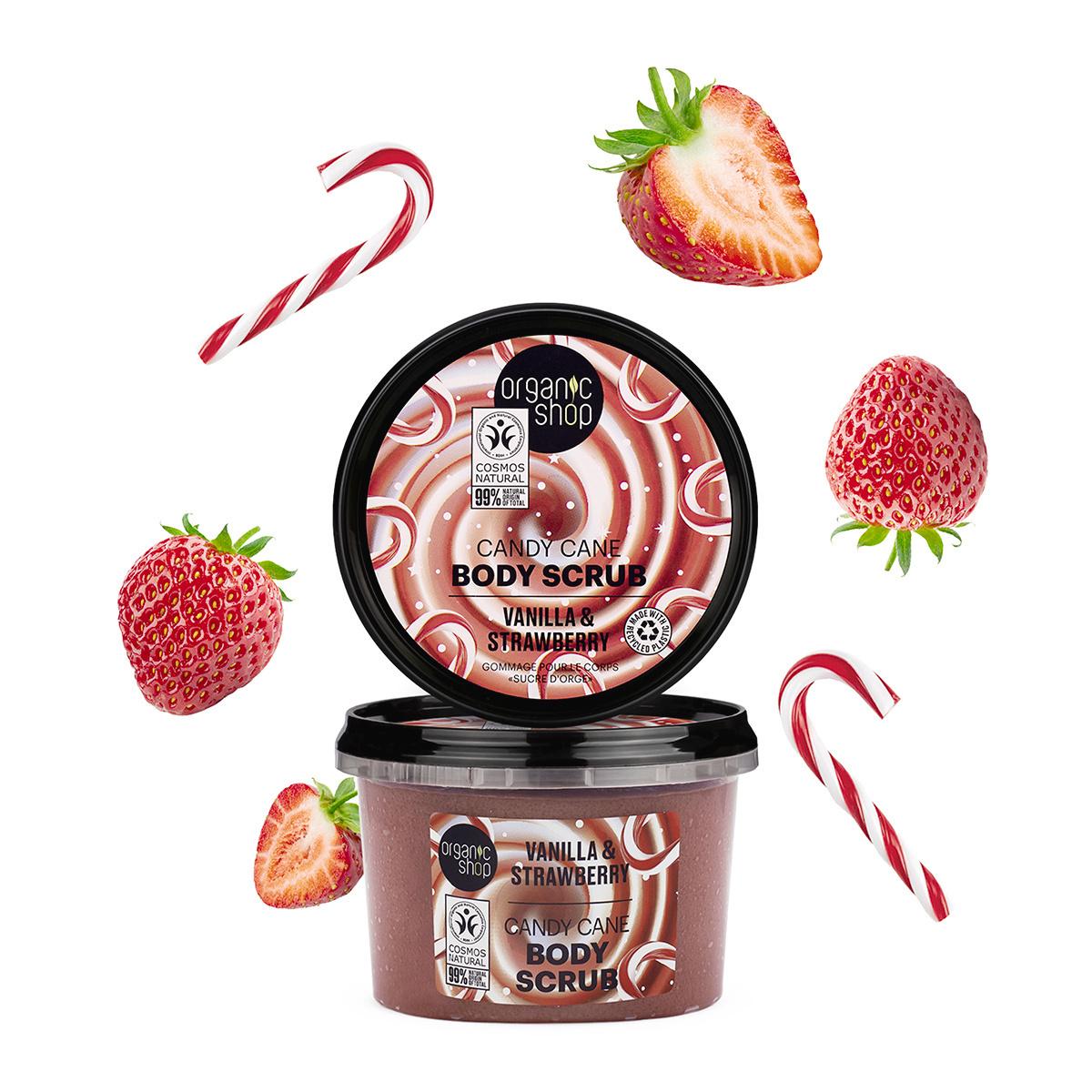 Vánoční limitovaná edice - přírodní tělový peeling Candy Cane. Užijte si vánoční náladu od prvních vteřin používání tohoto peelingu, který je skutečně symbolem sebelásky. Body scrub obohacen o výtažky z organické vanilky a jahod, které hydratují pokožku během exfoliace a zanechává po sobě příjemnou sladkou vůni.
