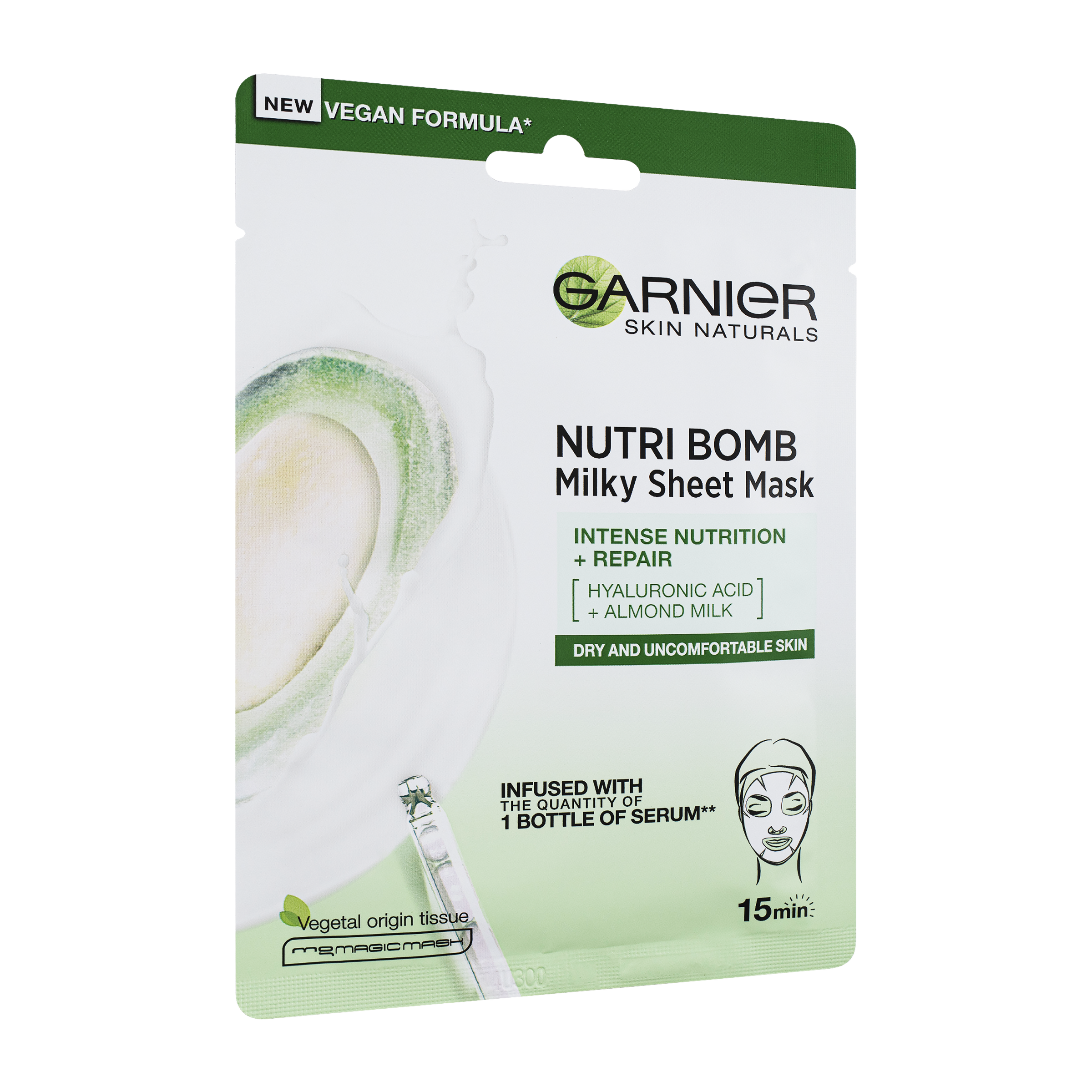 První textilní maska od Garnier s mléčným sérem, která vaši plet intenzivně vyživí a pomůže napravit suchost pleti již za 15 minut! Obsahuje sérum s mandlovým mlékem bio a kyselinu hyaluronovou. PROKÁZANÁ ÚČINNOST: Po 15 min.: Suchá pleť je vyživená a suchá místa jsou redukována. Po 1 týdnu: Suchá místa jsou redukována a pleť je pevnější.