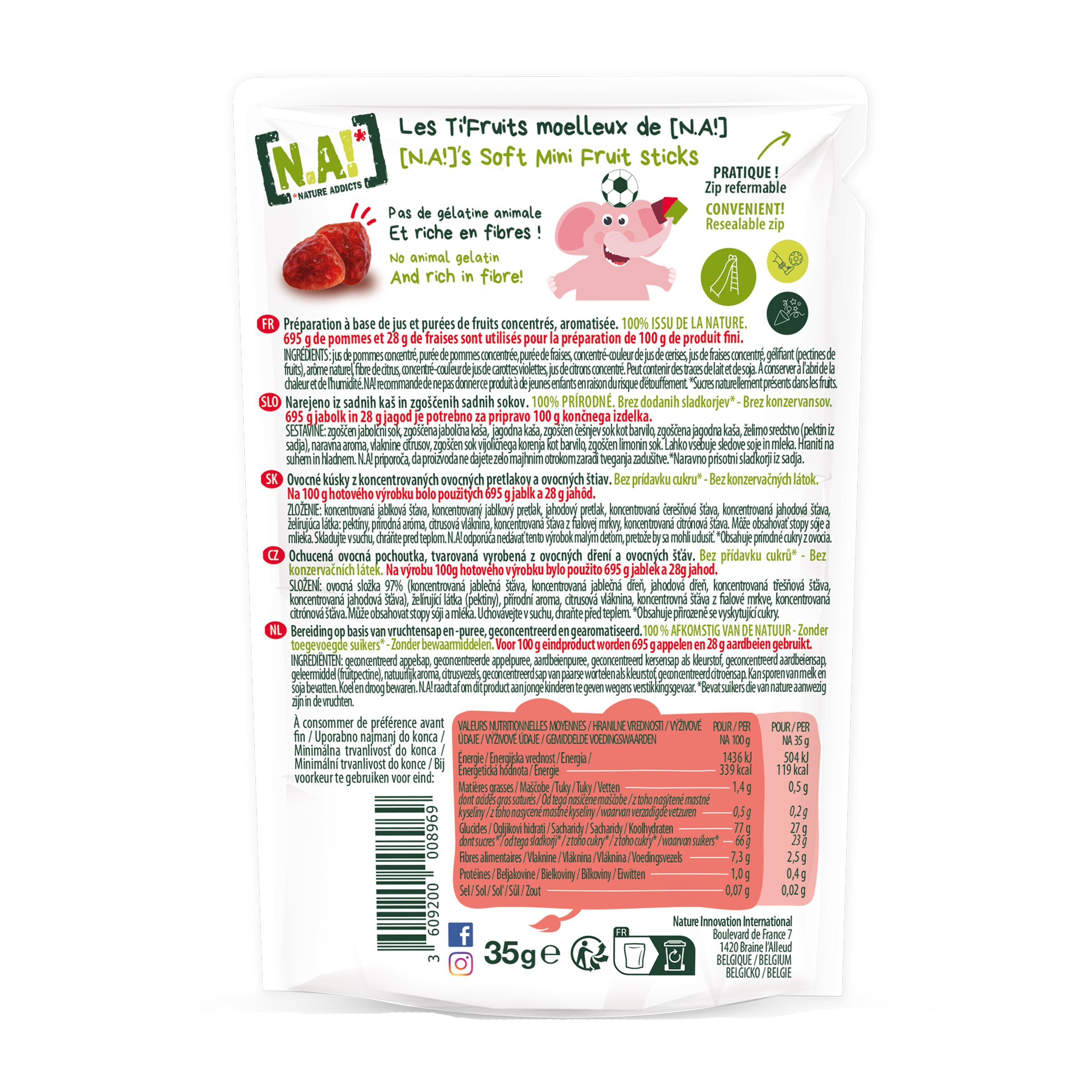 Svěží chuť jahody a lehkosti jablka ohromí ty nejmenší. Vhodné jako zdravá svačinka, která bude děti bavit.