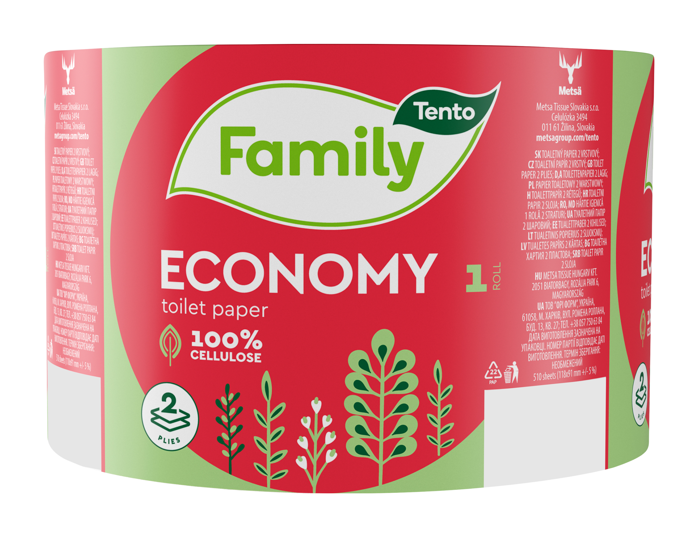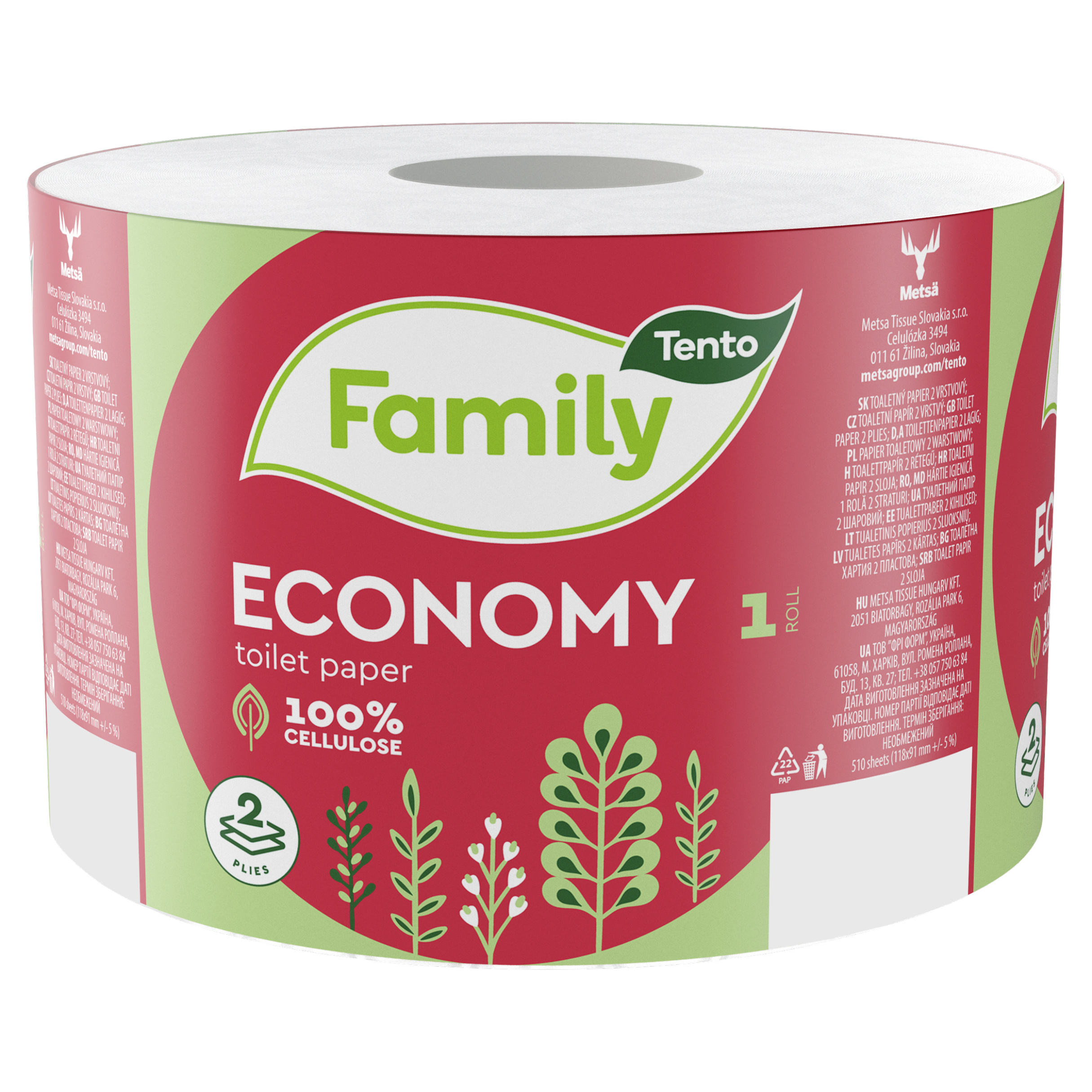 Balení 2vrstvého toaletního papíru Economy pro všechny, kteří preferují čistě bílý papír bez jakékoli parfemace.