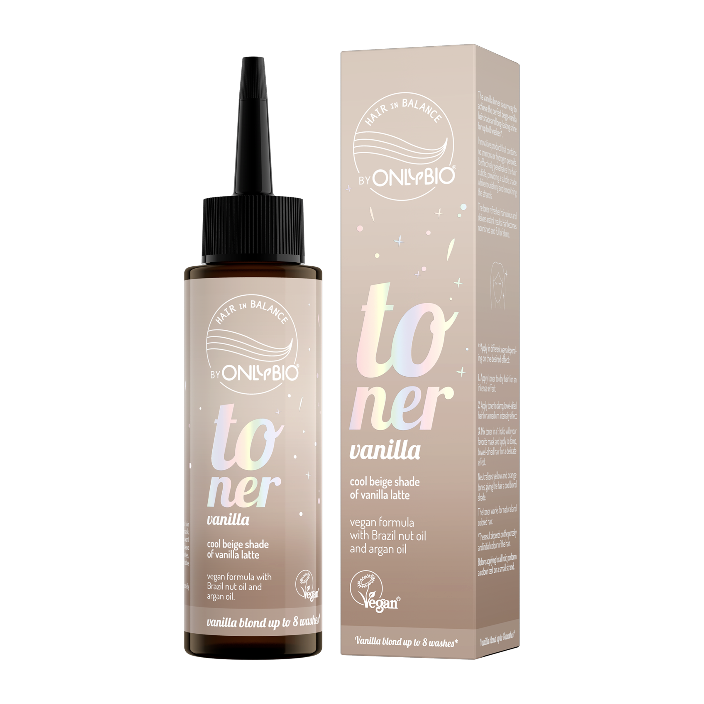Toner Vanilla přináší nádherný béžovo-vanilkový odstín a dlouhotrvající lesk vlasů až na 8 umytí. Tento inovativní produkt neobsahuje amoniak ani peroxid vodíku. Účinně proniká do kutikuly vlasů, dodává jemný odstín a zároveň je vyživuje a uhlazuje. Toner osvěžuje barvu a poskytuje okamžité výsledky, přičemž vlasy zanechává zdravé a lesklé. Vlasy jsou krásné a vyživené.