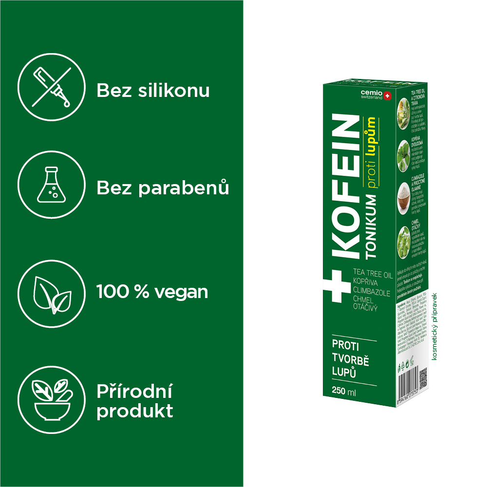 Tonikum představuje komplexní péči o vlasy a pokožku hlavy zaměřenou na odstranění lupů ve vlasech a zlepšení jejich celkového zdraví. Pokud hledáte co pomáhá na lupy, Cemio KOFEIN tonikum je tou správnou volbou.