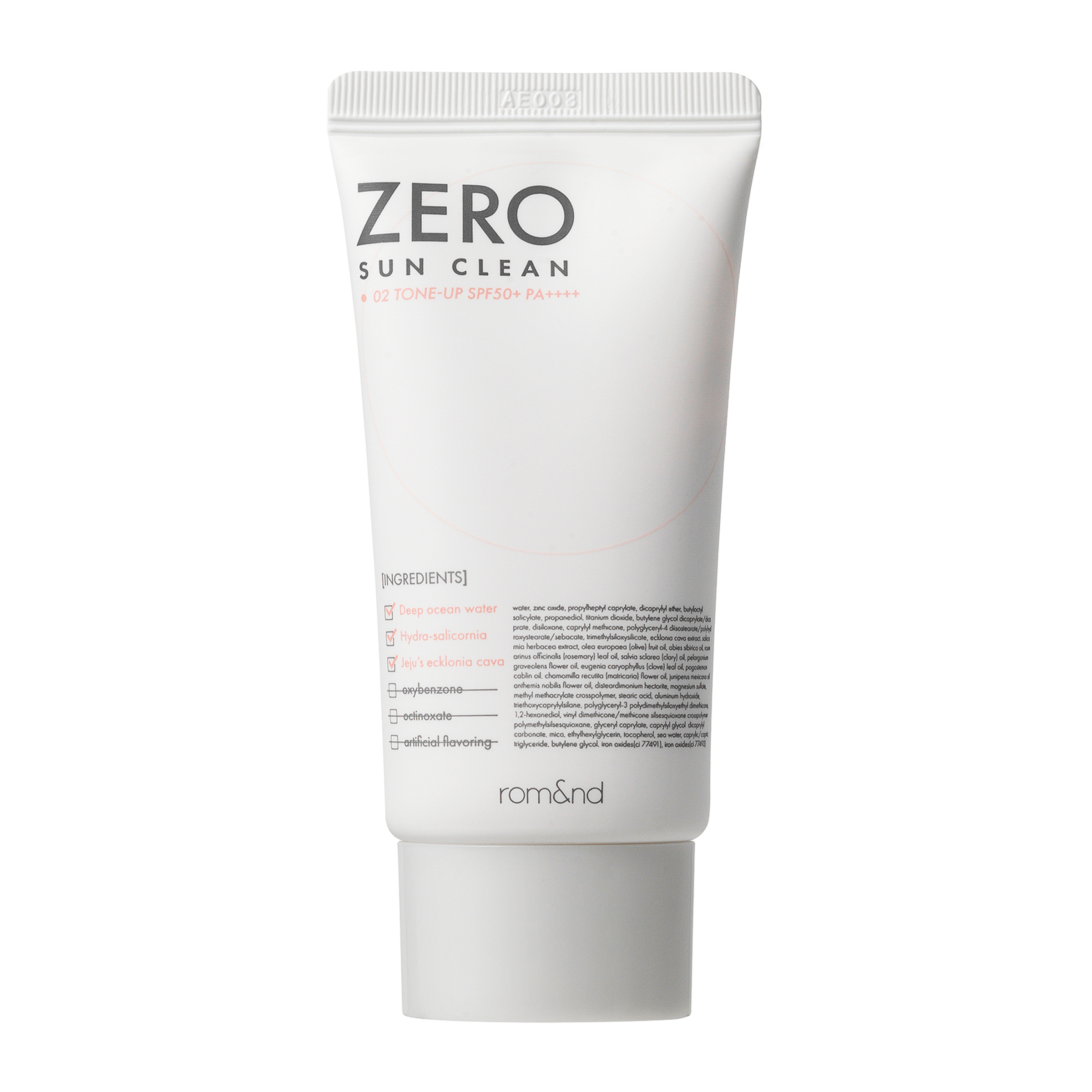 Rom&nd - Zero Sun Clean SPF50+ PA++++ - lehký krém s obsahem smíšených filtrů, které zajišťují vysokou ochranu před UVA a UVB zářením. Přípravek byl obohacen o pigmenty, které mají tónovací vlastnosti a sjednocují tón pleti, olivový olej, který vyživuje a vyhlazuje a heřmánkový olej, který zklidňuje. Krém má lehkou, nelepivou konzistenci a nezatěžuje pleť.