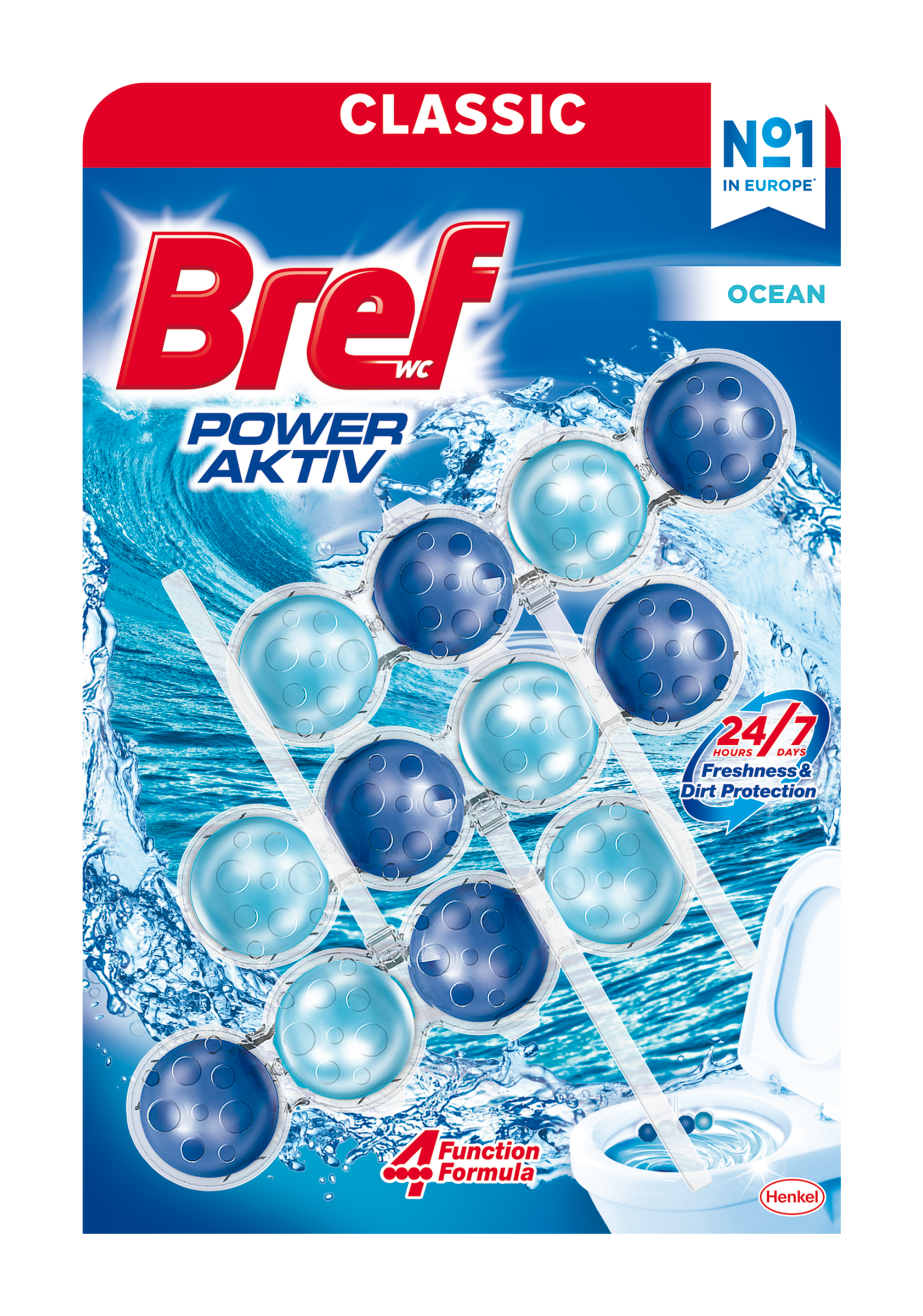 Bref Power Aktiv WC blok s vůní oceánu a o + 50 % vyšším účinkem proti vodnímu kameni* Hledáte jednodušší způsob, jak udržet vaši toaletu čistou a svěží? Bref WC blok je jednoduchým a pohodlným způsobem, který zajišťuje čistotu a svěžest ve vaší toaletě od prvního do posledního spláchnutí. Bref Power Aktiv WC blok s o + 50 % vyšším účinkem proti vodnímu kameni má složení se 4 funkcemi: