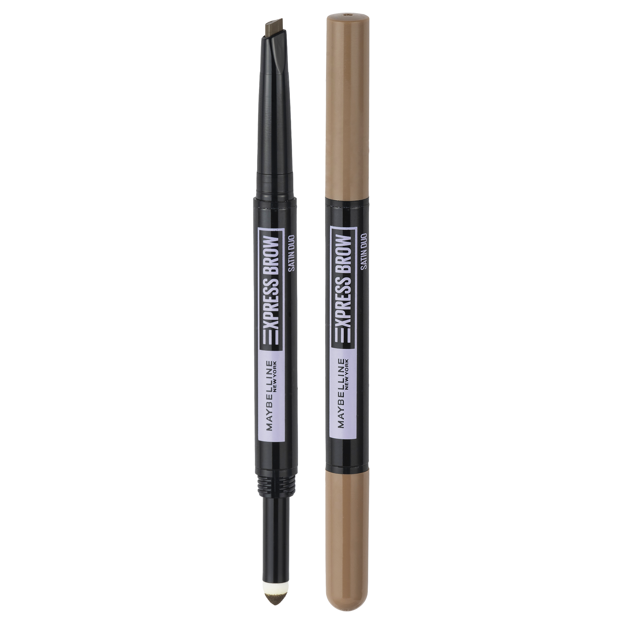 Nová a vylepšená oblíbená tužka na obočí 2v1 Express Brow Satin Duo pro dokonalé obočí. Precizní hrot ve tvaru kapky a houbičkový aplikátor pro snadnou úpravu a krásně plné obočí.