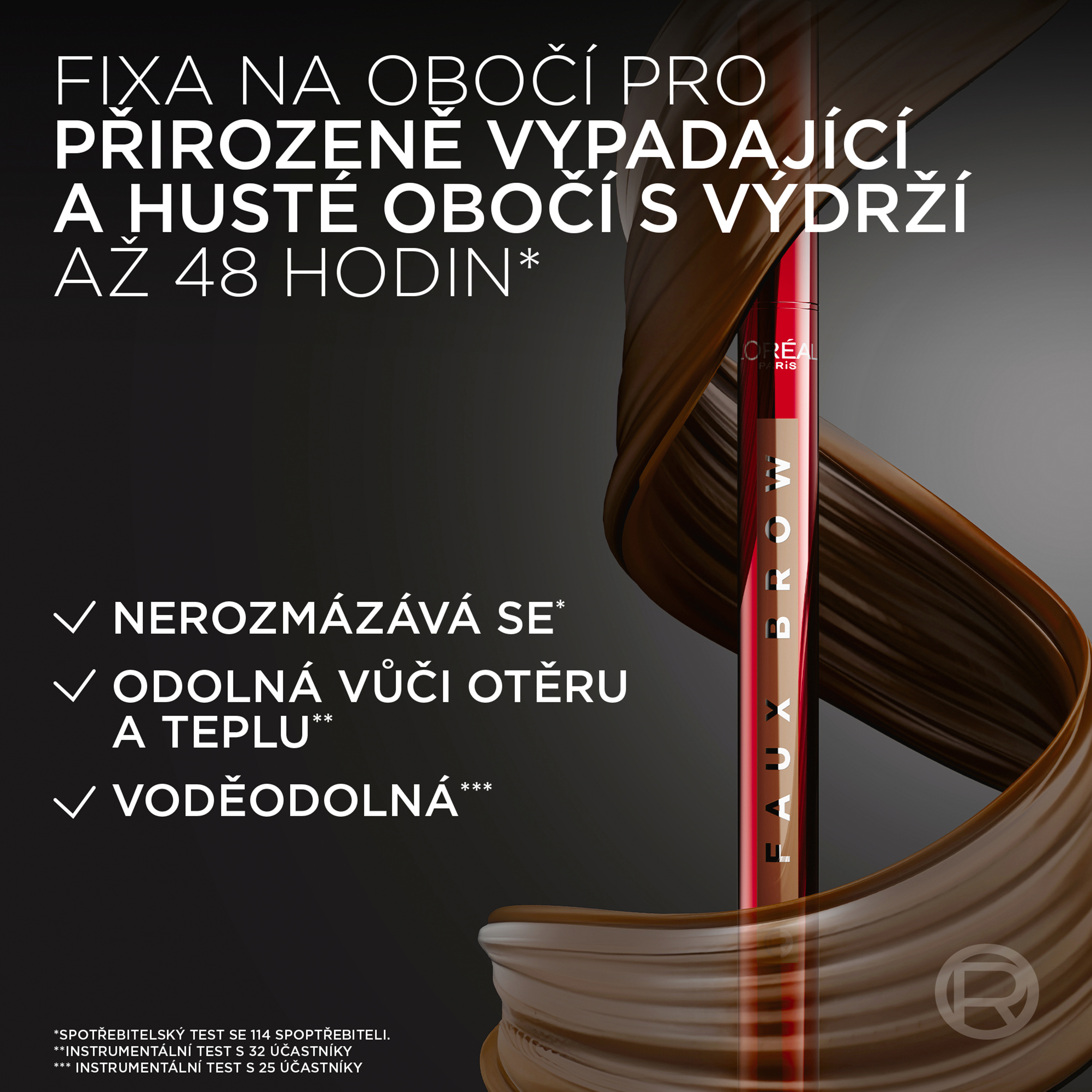 Aplikace krok za krokem: 1. Pro požadovaný vzhled pročešte obočí směrem nahoru pomocí L'Oréal Paris Brow Lamination. 2. Fixkou Infaillible Faux Brow jemně vyplňte mezery a definujte tvar obočí. Začněte v přední části obočí a krátkými tahy napodobujícími chloupky postupujte směrem ke konci.