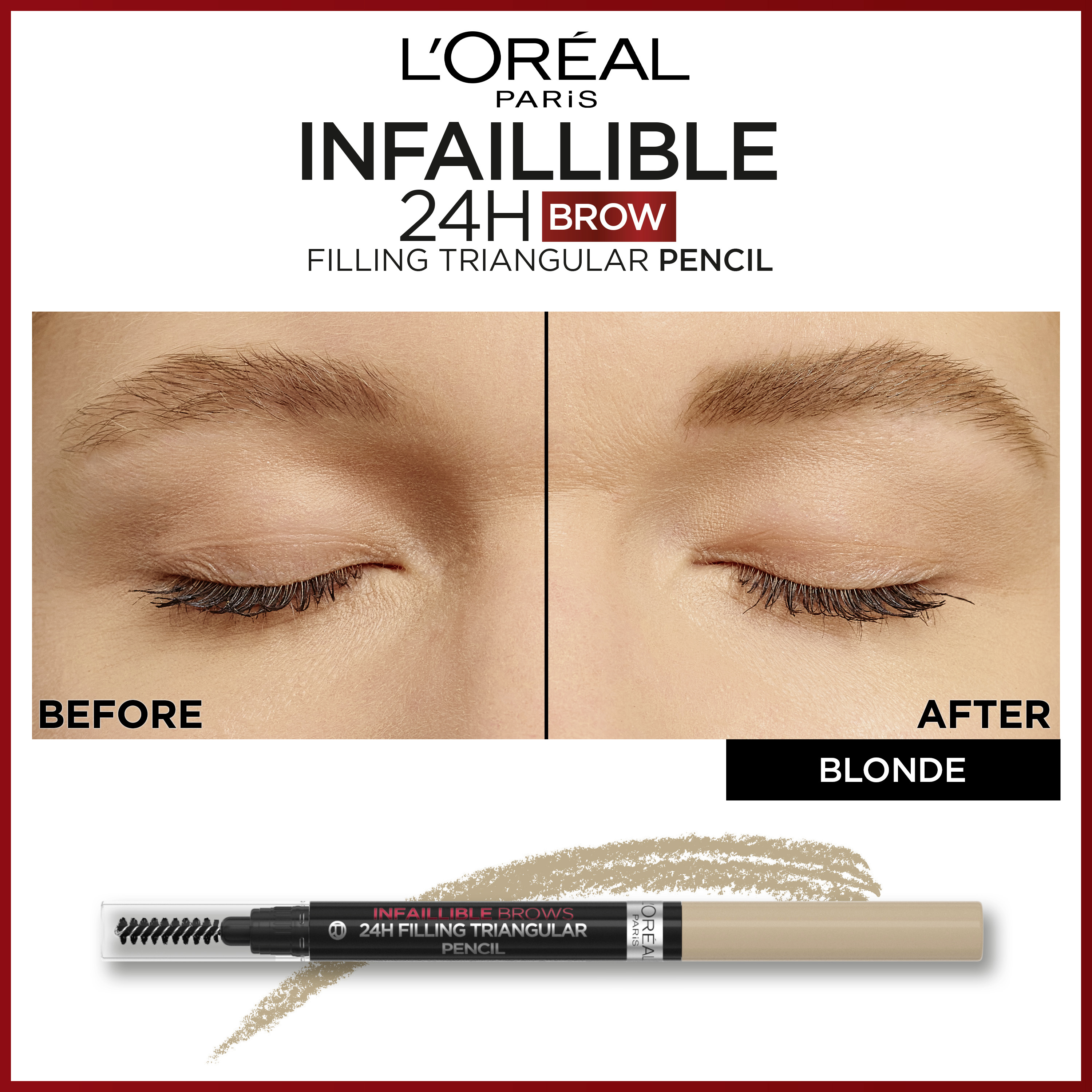 Objevte jedinečnou technologii v trojúhelníkové tužce na obočí Infaillible Brows 24H Filling Triangular Pencil od L´Oréal Paris pro bezchybný sjednocený tvar obočí bez vynechání. Pevná textura tužky na obočí se během aplikace přemění v tekutou pro maximálně snadné nanášení a přirozený efekt. Obsahuje vestavěný kartáček pro snadné pročesání a precizní tvarování obočí. Voděodolná tužka na obočí, která se nerozmazává a neláme.