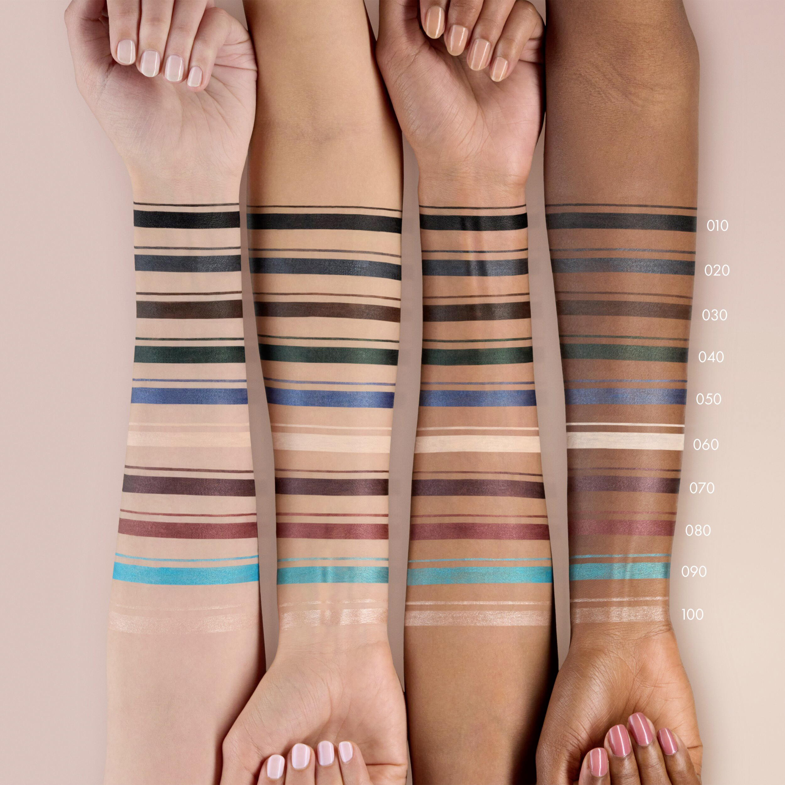 Díky 2mm vysouvací tuze je aplikace jednoduchá a přesná. Měkká a voděodolná gelová textura nabízí vysokou barevnou pigmentaci a dlouhotrvající efekt až po 20 hodin. Tmavě černá, teplá hnědá nebo zářivá modrá – s různými odstíny nabízí tužka na oči perfektní odstín pro každou barvu očí.