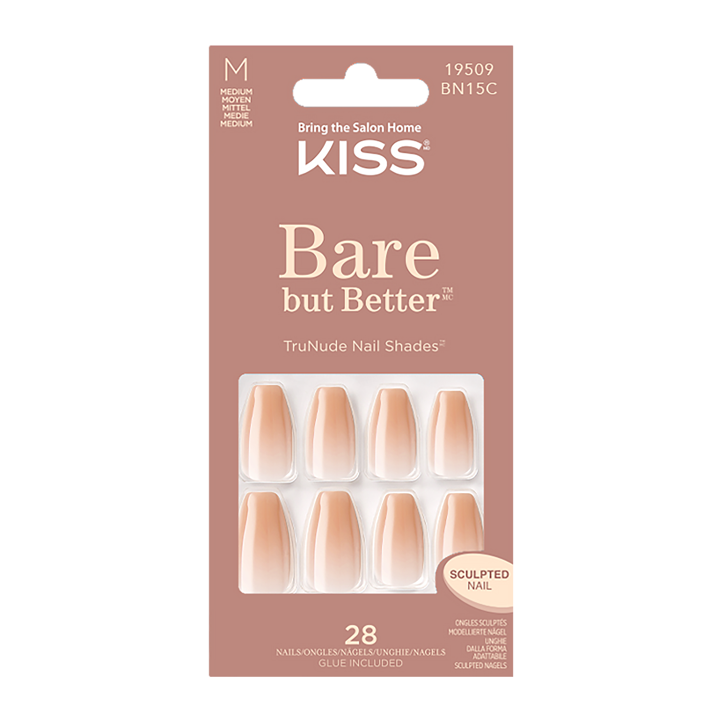 Tato čistě vypadající manikúra bez jakýchkoli nedokonalostí perfektně padne na vaše prorozené nehty. Nehty KISS Bare-but-better Nails si můžete sami aplikovat v domácím prostředí. Tyto nehty vypadají zcela přirozeně bez jakýchkoli šmouh, linií nebo nerovností. Díky snadné aplikaci lepidla je vše velmi jednoduché. K dispozici v krátkých i středních délkách. Nehty KISS Bare but better jsou odolné a flexibilní. Ideální pro každodenní nošení.