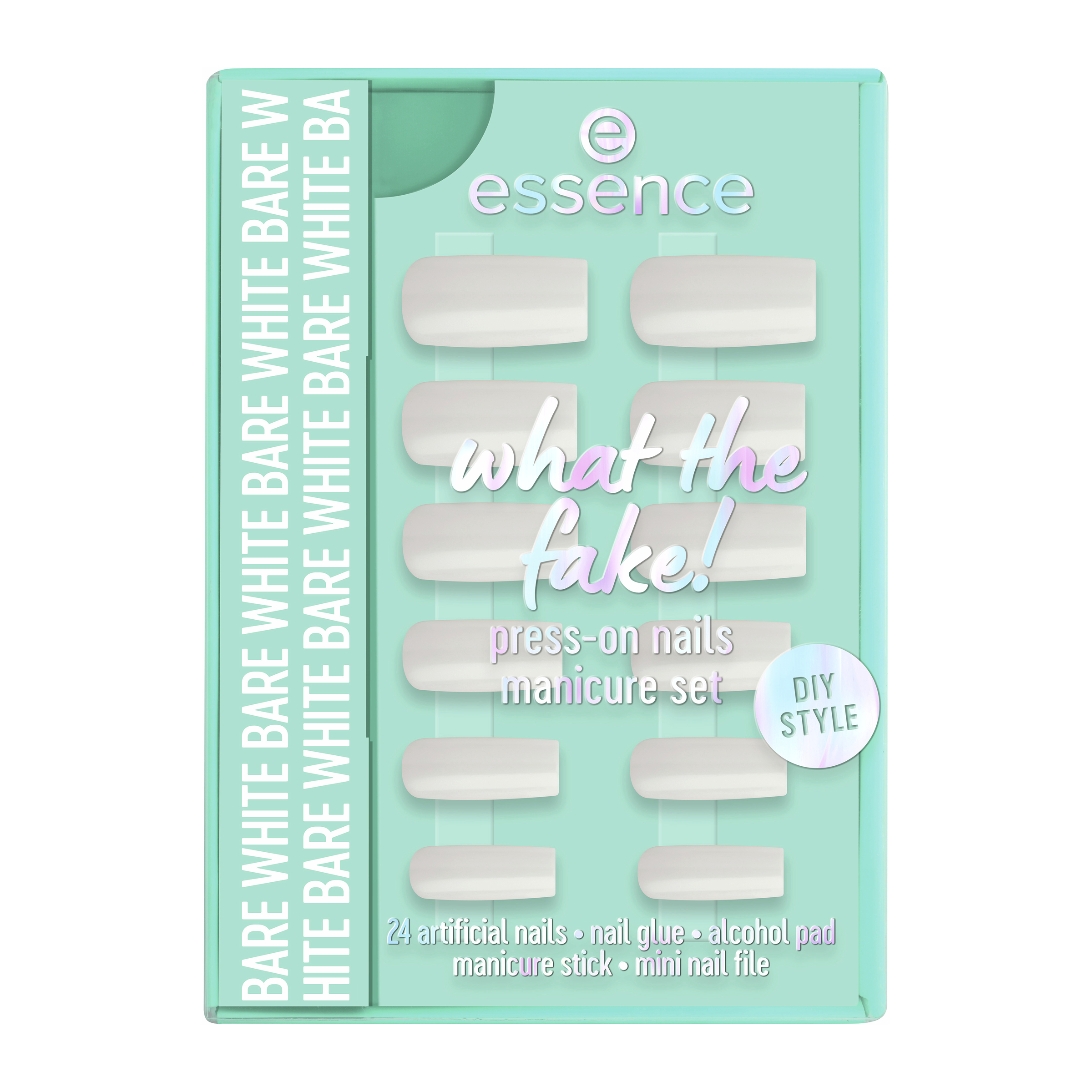 Hotové nehty během několika minut díky essence what the fake! sadě s umělými nehty PRESS-ON 04 BARE WHITE. Tato sada obsahuje 24 vysoce kvalitních umělých nehtů ve 12 různých velikostech v hranatém tvaru v základním bílém odstínu. Díky svému preciznímu tvaru a kvalitě se nehty dokonale přizpůsobí vašim přirozeným nehtům – pro vzhled jako ze salonu u vás doma. Sada obsahuje také lepidlo na nehty, tyčinku na manikúru, mini pilník na nehty a čisticí ubrousek na nehty – vše, co potřebujete pro snadnou aplikaci dlouhotrvající manikúry. Snadná aplikace a výsledek, který si zamilujete!