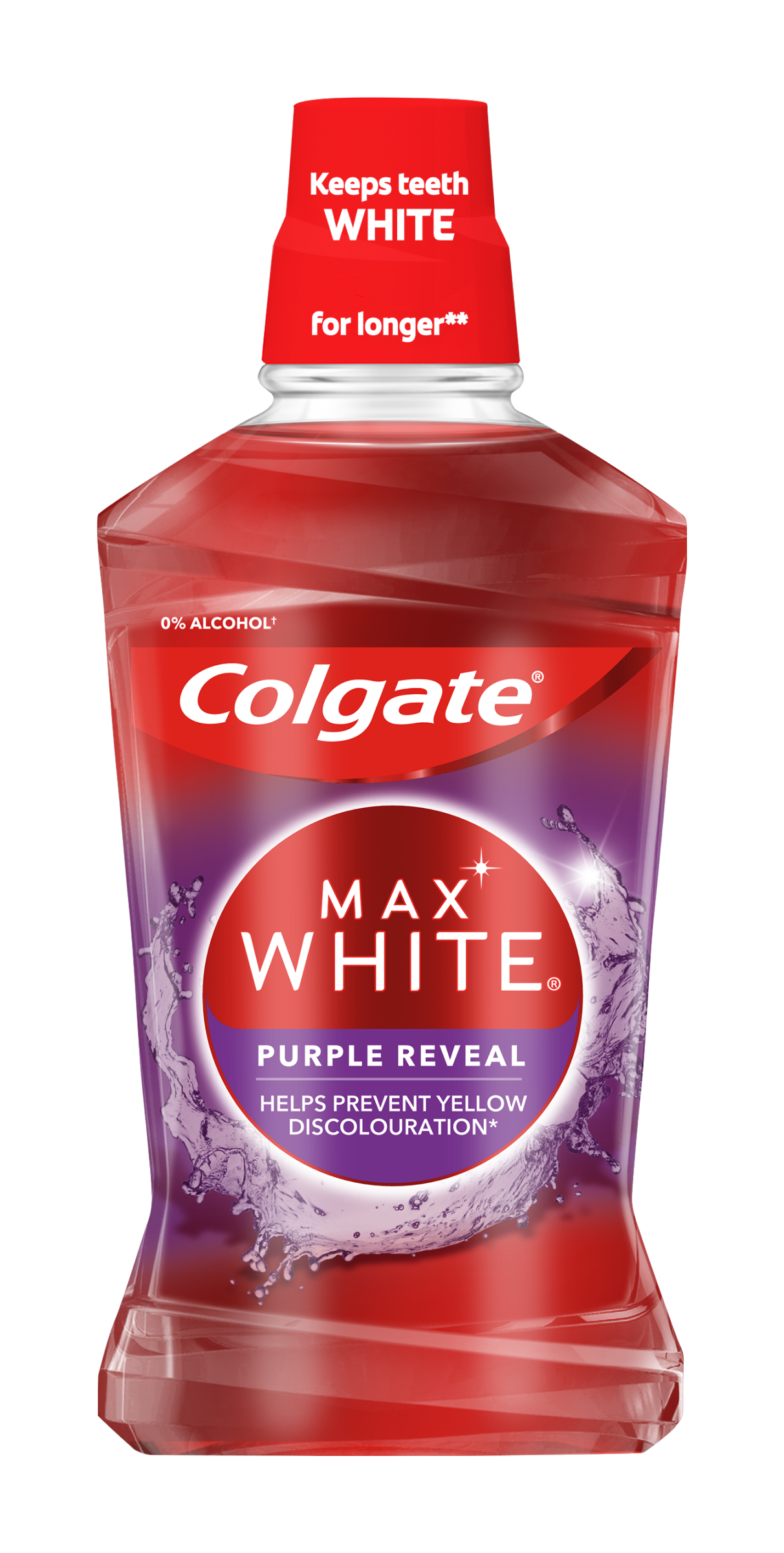 Ústní voda Colgate Max White Purple Reveal pomáhá udržet vaše zuby bílé po delší dobu* a nabízí trvalou prevenci skvrn*. *Chrání před povrchovými skvrnami, při pravidelném používání.