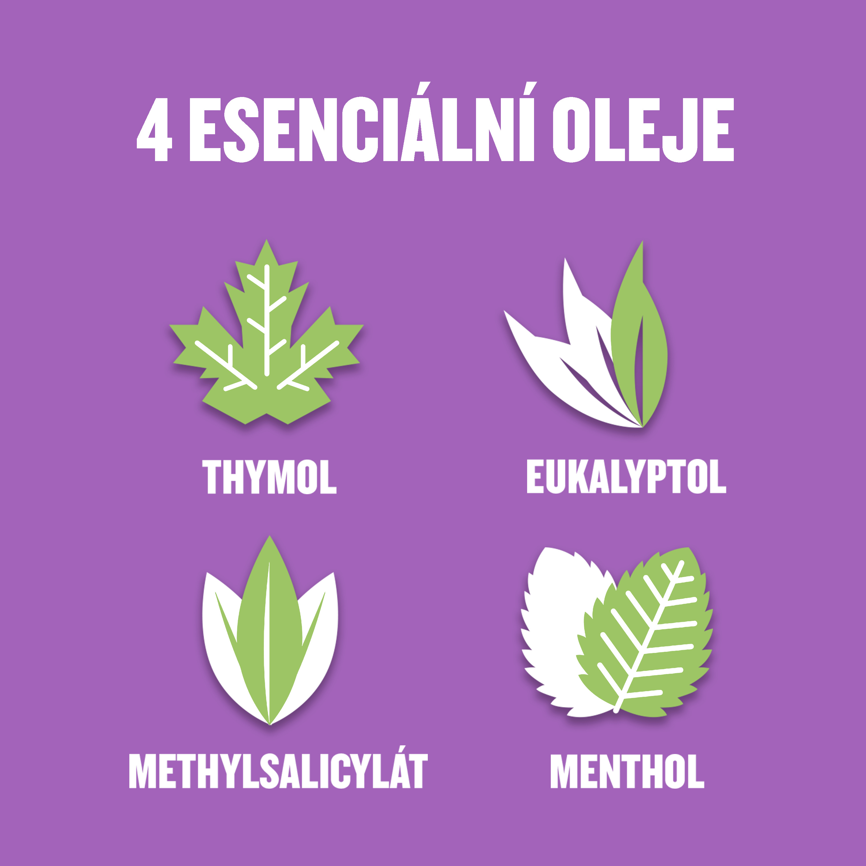 - Díky jedinečné kombinaci esenciálních olejů účinně bojuje proti bakteriím i tam, kam se zubní kartáček nedostane: mezi zuby, na dásních a na jazyku
