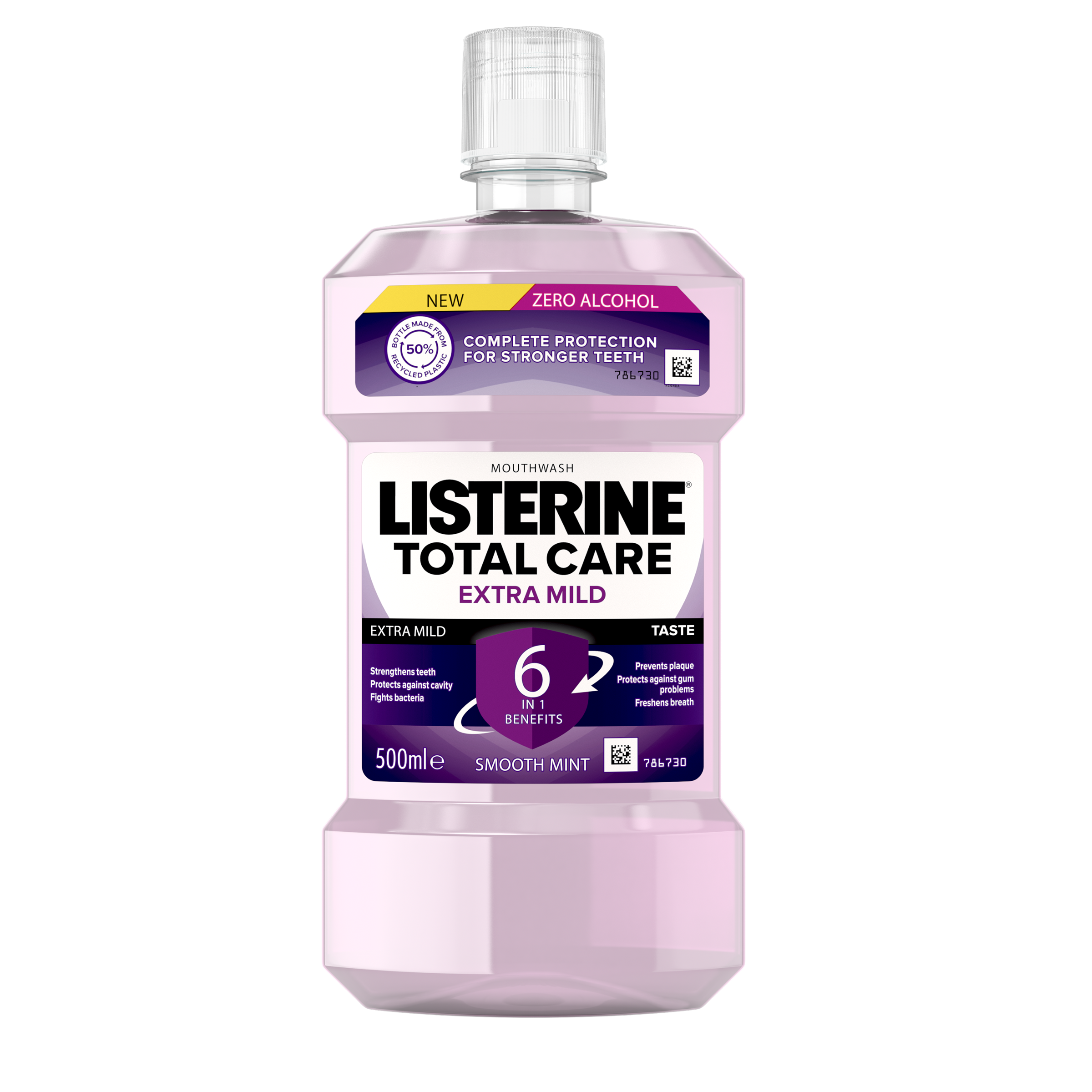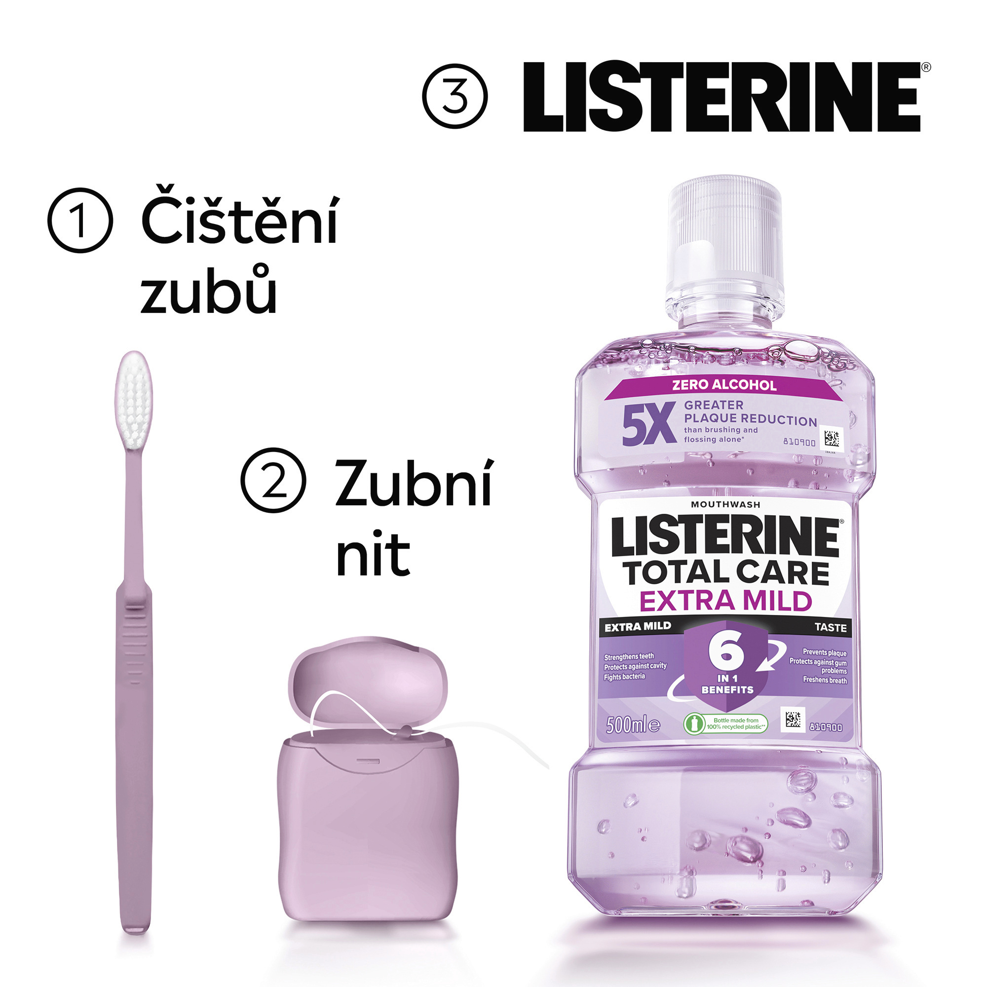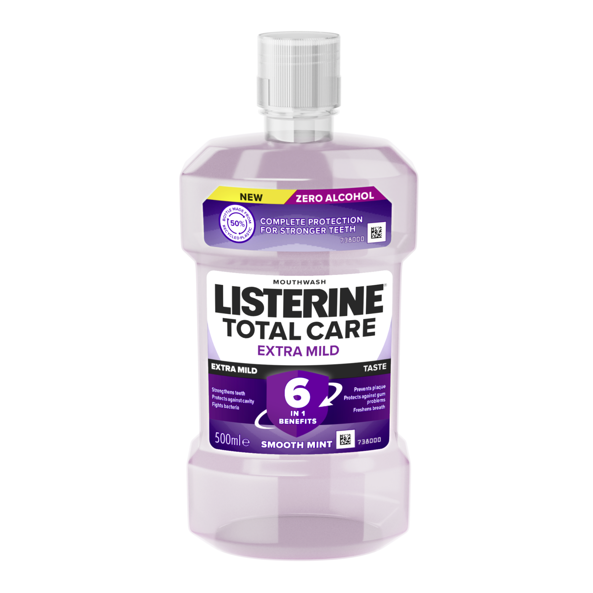 Ústní voda Listerine® Total Care Extra Mild při používání dvakrát denně zlepšuje ústní hygienu - s esenciálními oleji, fluoridem a chloridem zinečnatým. Poskytuje celkovou ochranu pro silné zuby s 6 výhodami v 1: